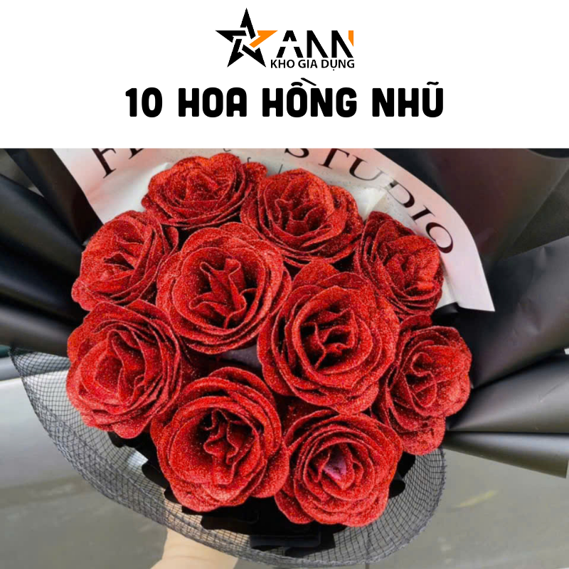 10 Bông Hồng Nhũ Tông Đỏ Size To