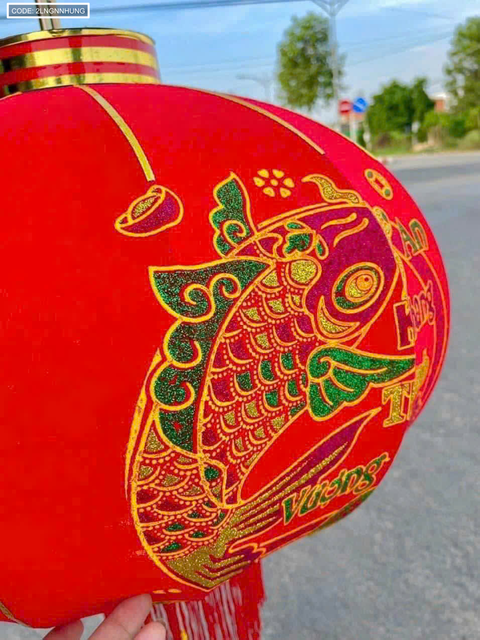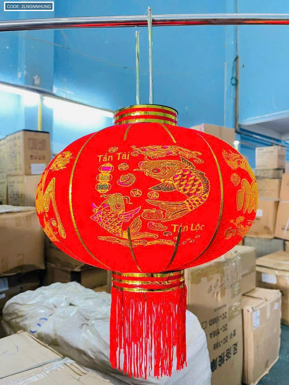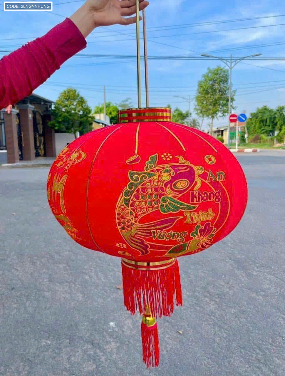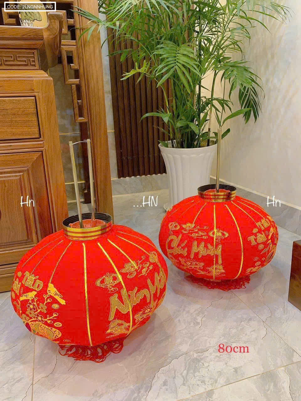 2 LỒNG ĐÈN NHUNG KẺ TẾT 80CM(Giá 2 cái)