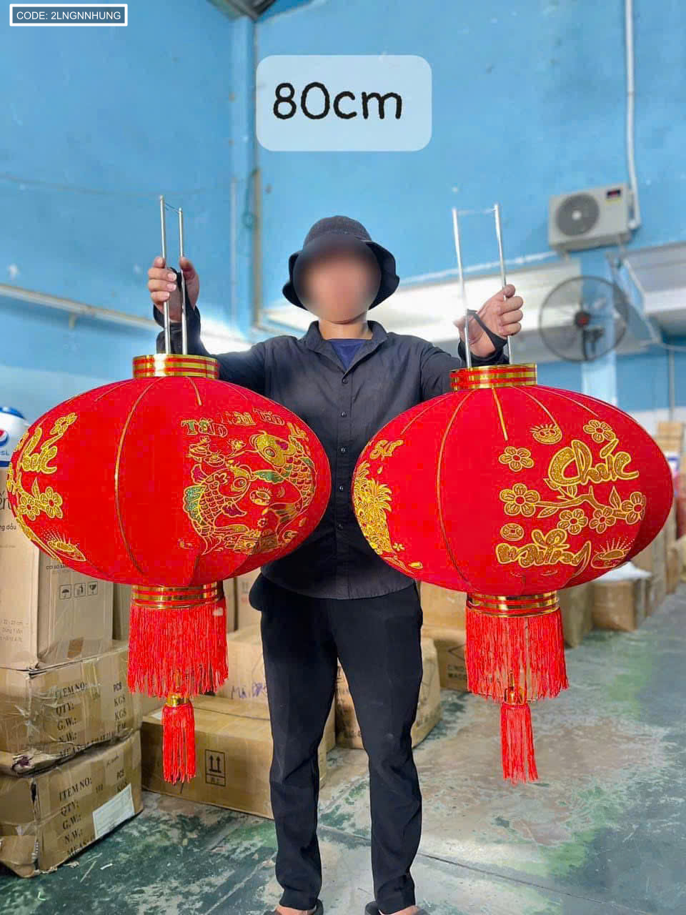 Bán sỉ 2 lồng đèn nhung kẻ tết 80cm(giá 2 cái) giá rẻ trên toàn quốc