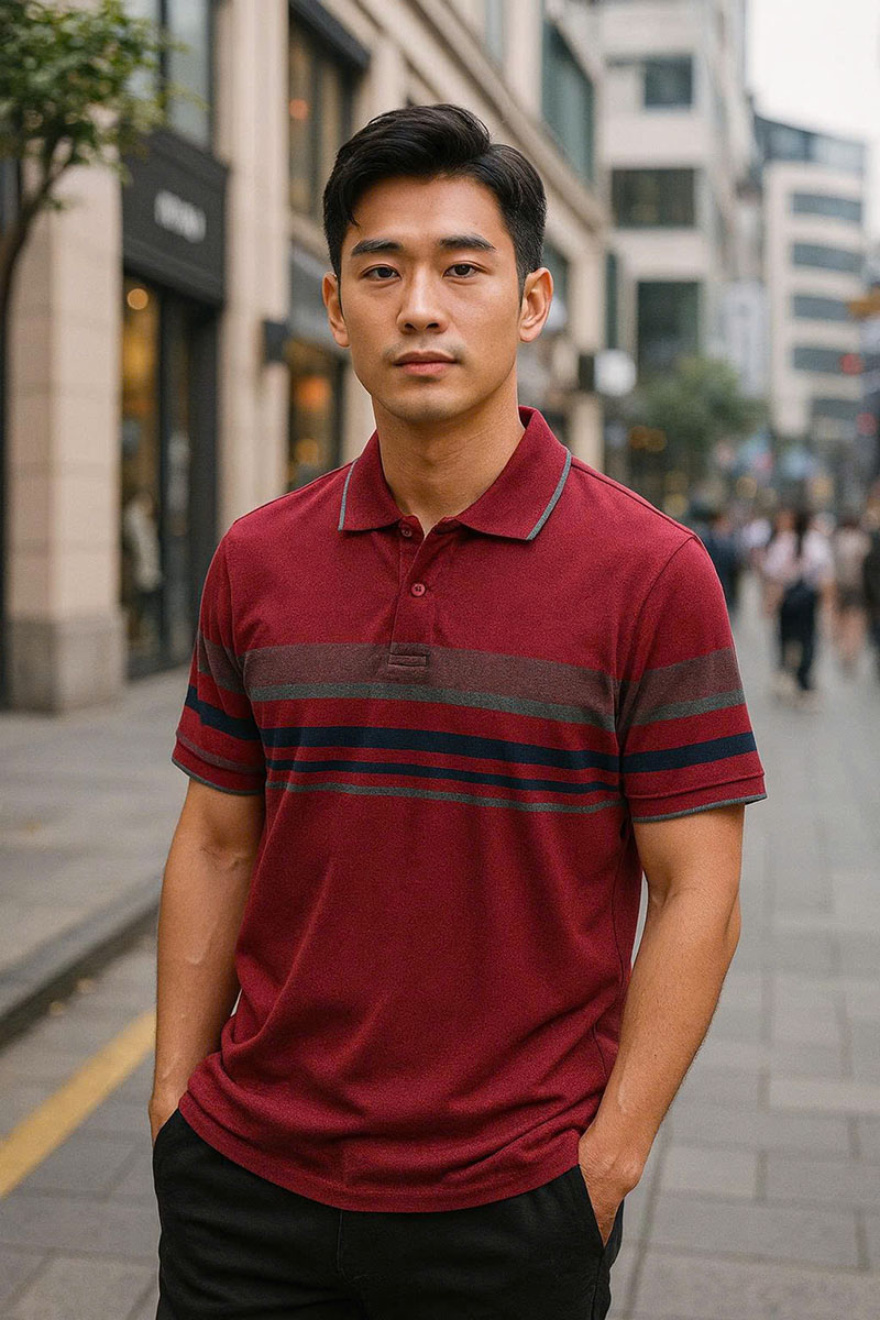 Áo thun cotton cổ bẻ sọc ngang( giá mới)
