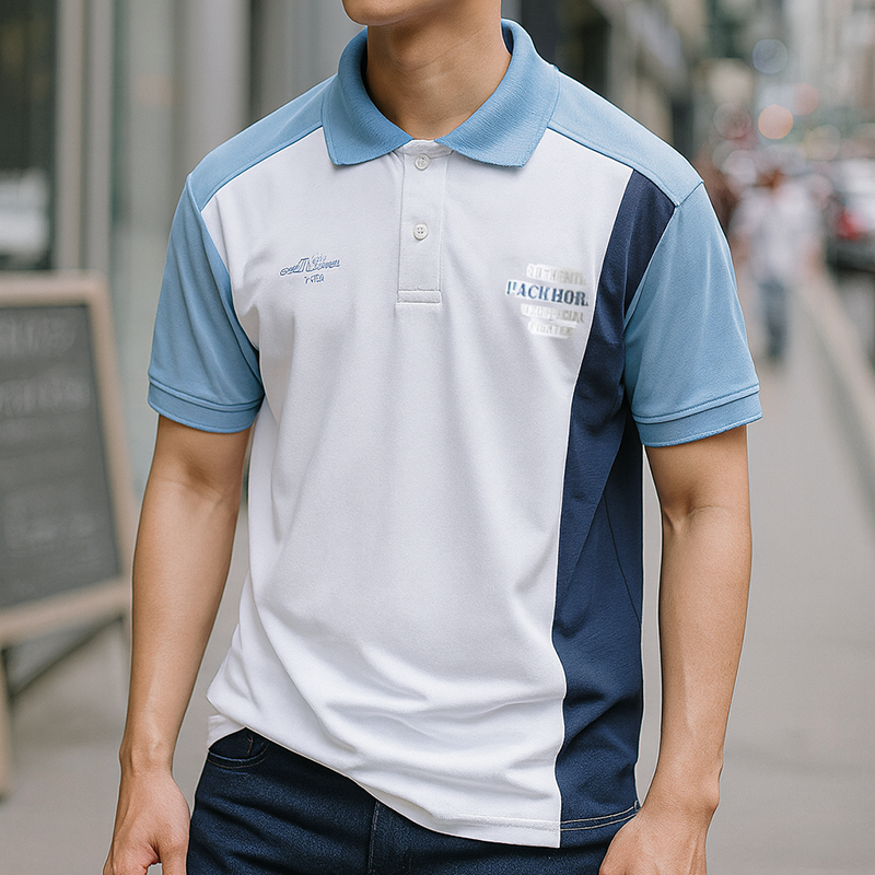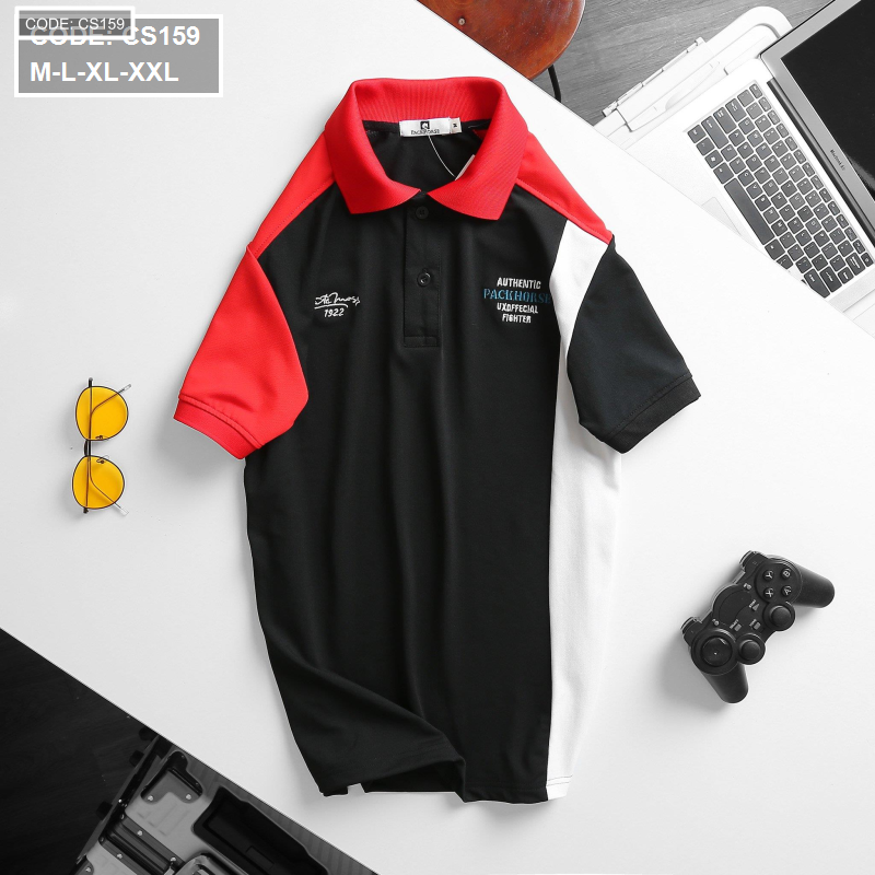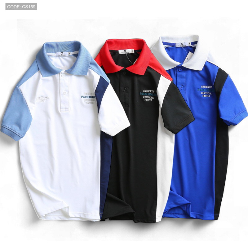 Cung cấp sỉ áo thun nam cá sấu poly cổ bẻ ghép vải thêu chữ chất lượng tốt giá tận gốc