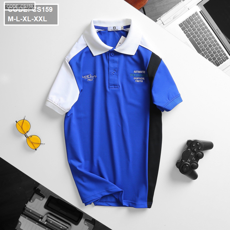Áo Thun Nam Cá Sấu Poly Cổ Bẻ Ghép Vải Thêu Chữ