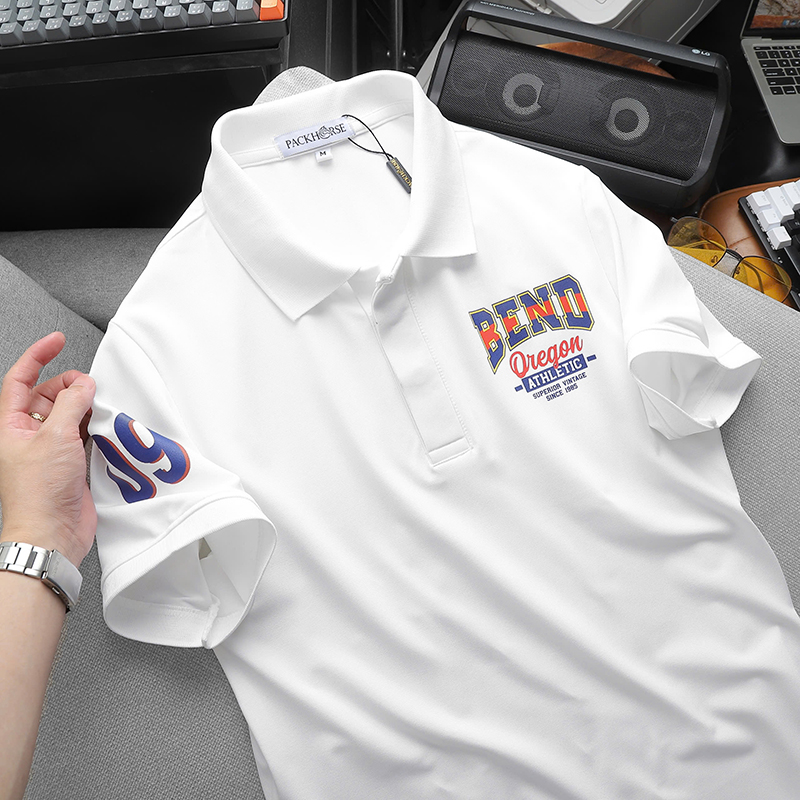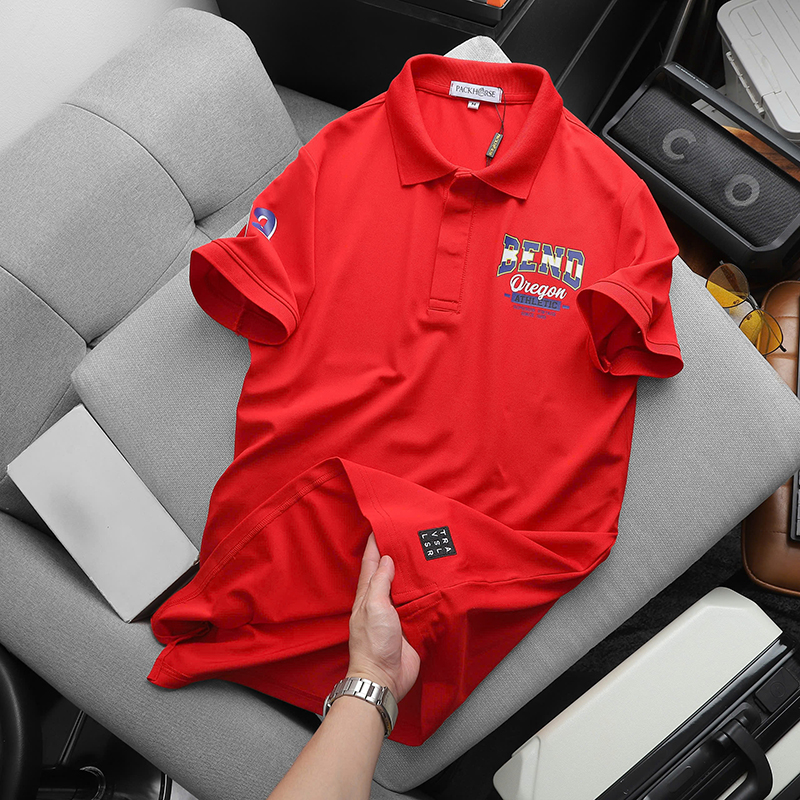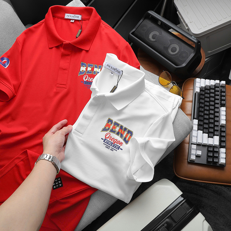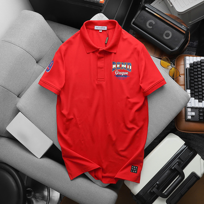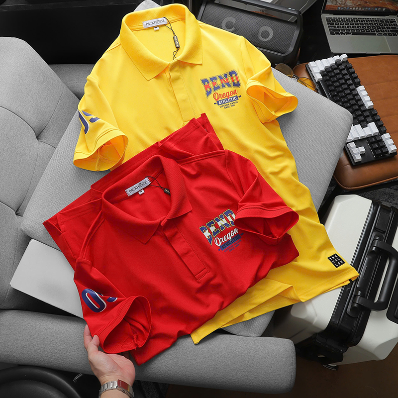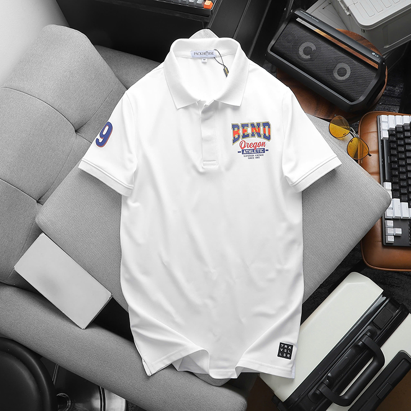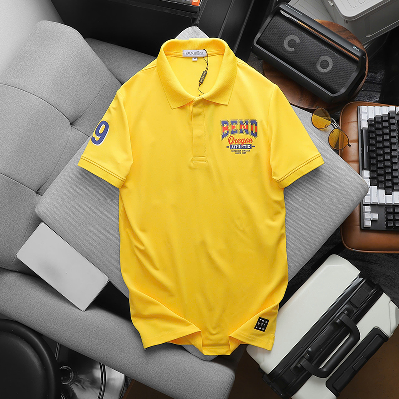 Áo thun nam có cổ in logo trước ngực và tay áo lựa chọn cho phong cách thời trang trẻ trung và hiện đại