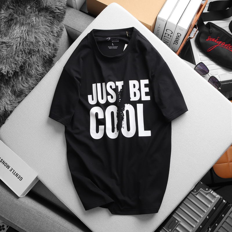 Cung cấp sỉ áo thun nam cổ tròn rurumen màu đen in chữ just be cool big size chất lượng tốt giá tận gốc