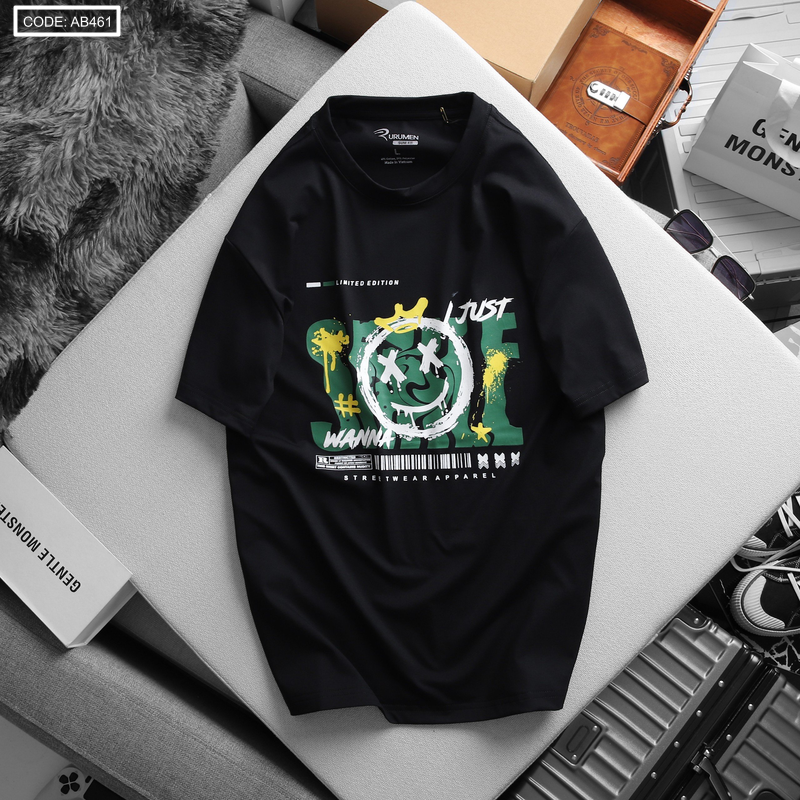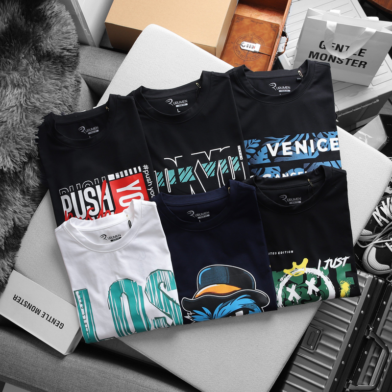 Bỏ sỉ áo thun nam cổ tròn rurumen màu đen in icoin marshmello big size giá sỉ tận gốc