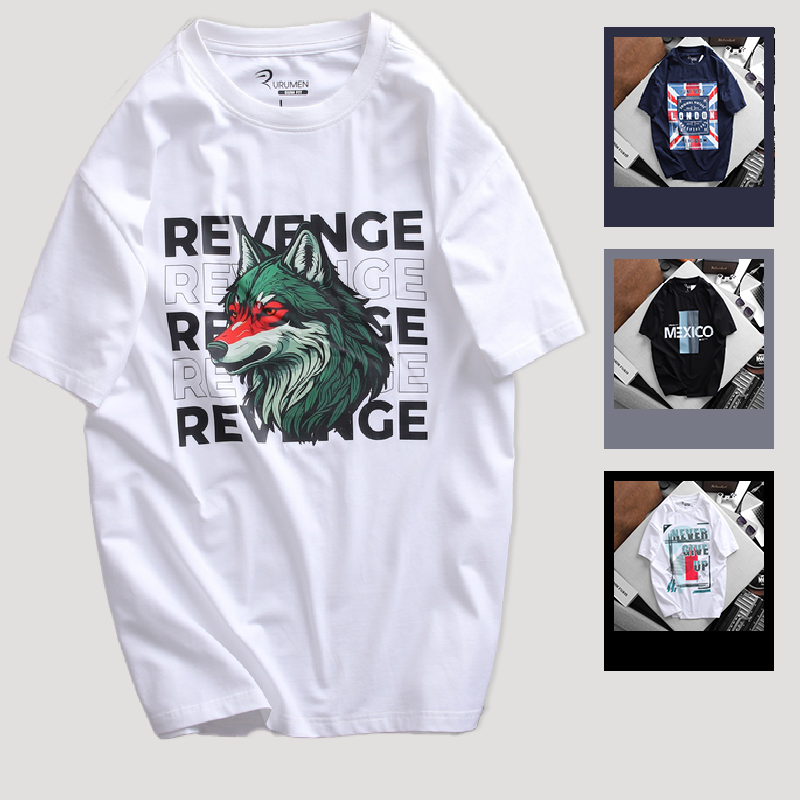 Bán sỉ áo thun nam cổ tròn rurumen màu trắng hình sói big size giá rẻ trên toàn quốc