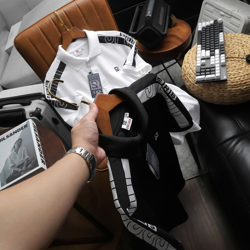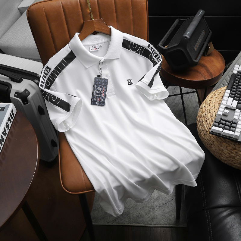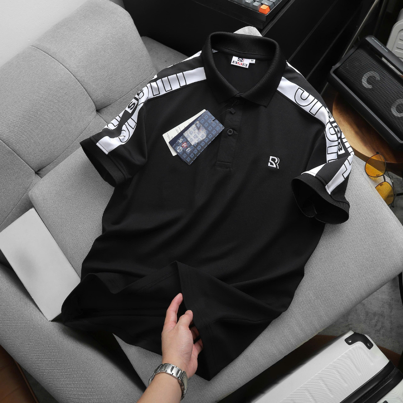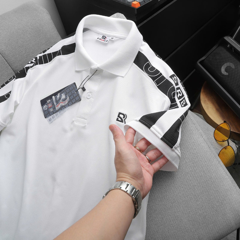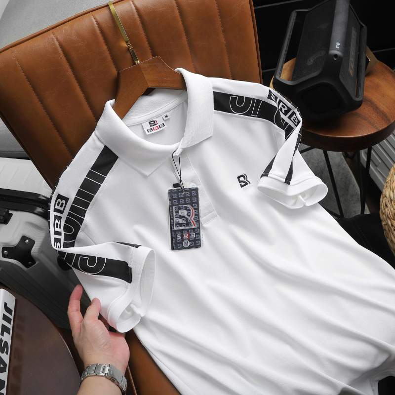 👉 Đây chính là lựa chọn dành cho bạn: Áo Thun Nam Polo Cổ Bẻ Thêu Logo SRB, tay phối sọc cá tính.