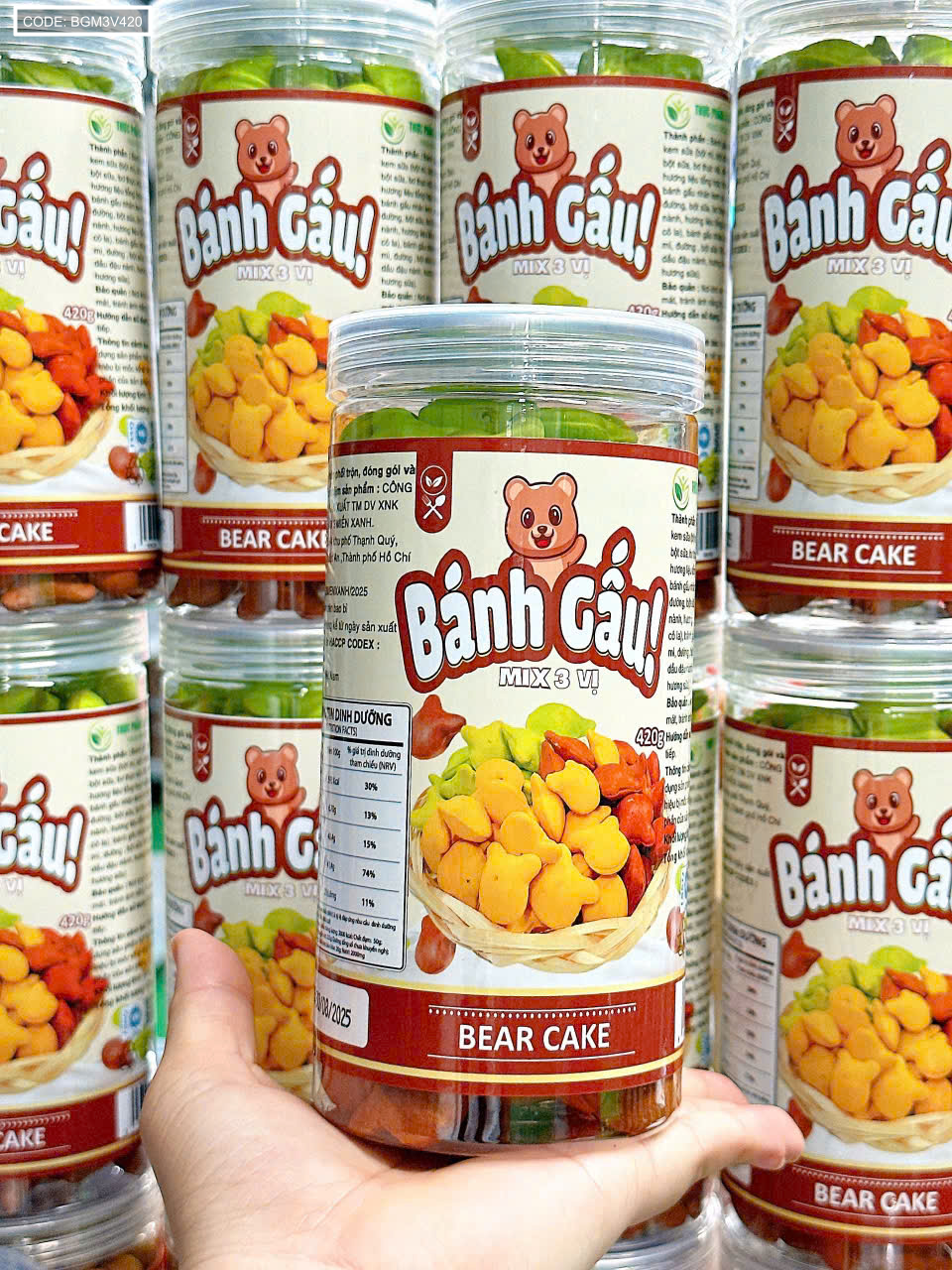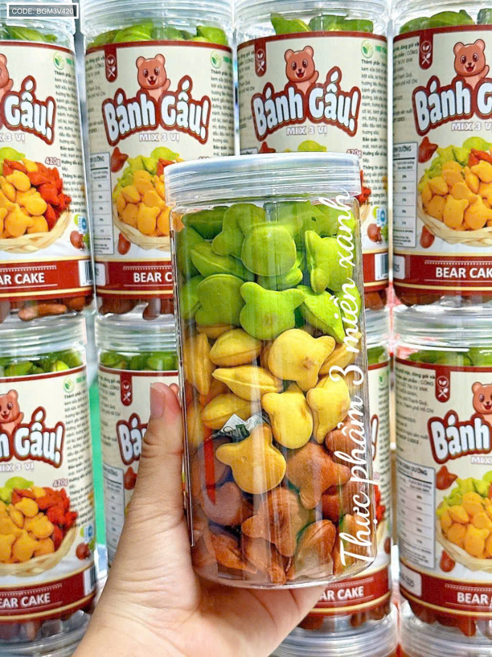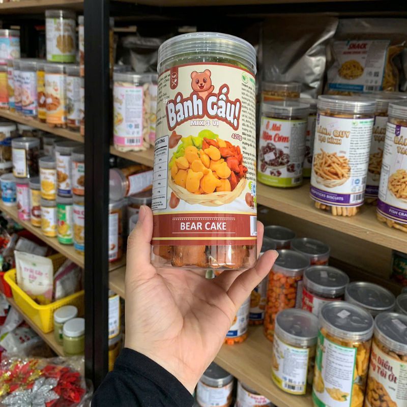 Chuyên sỉ bánh gấu mix 3 vị thơm ngon hộp pet 420g (chùm ngây- socola – truyền thống) hộp giá gốc tại TPHCM