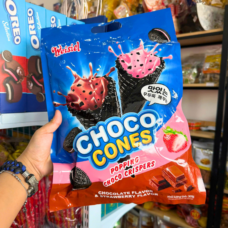 Chuyên sỉ bánh kem ốc quế weisiel (hương choco-dâu) 300g giá gốc tại TPHCM