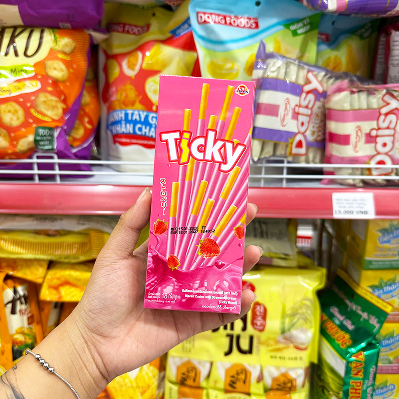 Bán sỉ bánh que đũa phủ dâu ticky uni firms – màu hồng giá rẻ trên toàn quốc