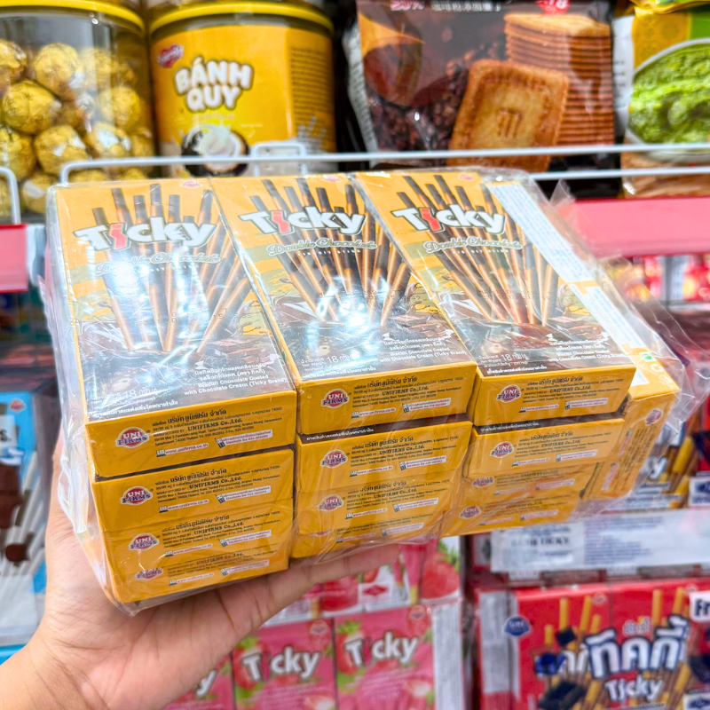 Bánh Que Đũa Phủ Gấp Đôi Socola Ticky Uni Firms Lốc 13 Hộp – Màu Vàng