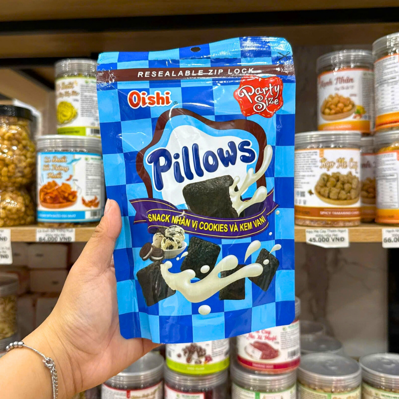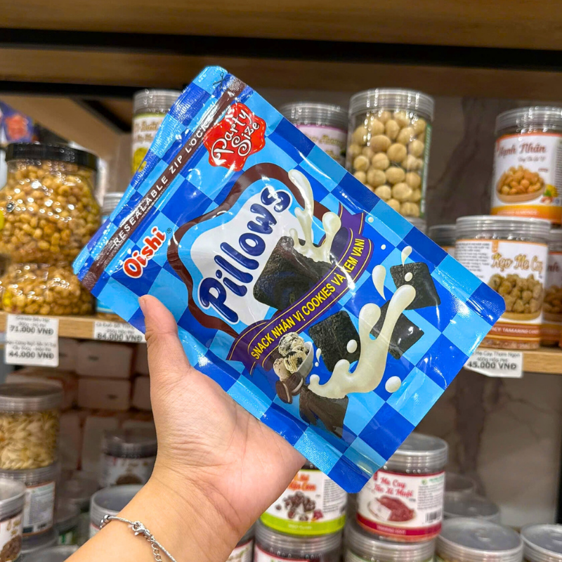 Cung cấp sỉ bánh quy nhân kem socola oishi pillows vị cookies vani 80g chất lượng tốt giá tận gốc