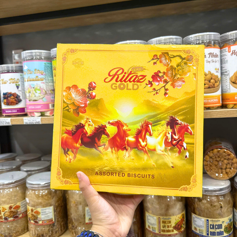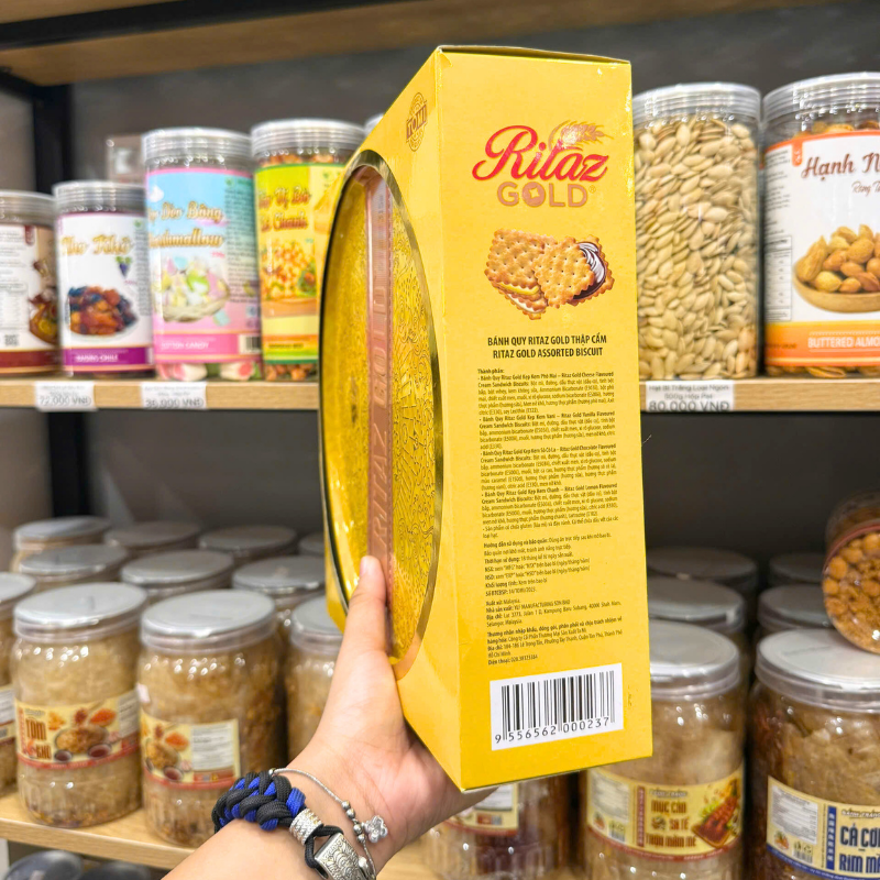 Bán sỉ bánh quy ritaz gold thập cẩm hộp thiếc hoa văn vàng 315g giá rẻ trên toàn quốc