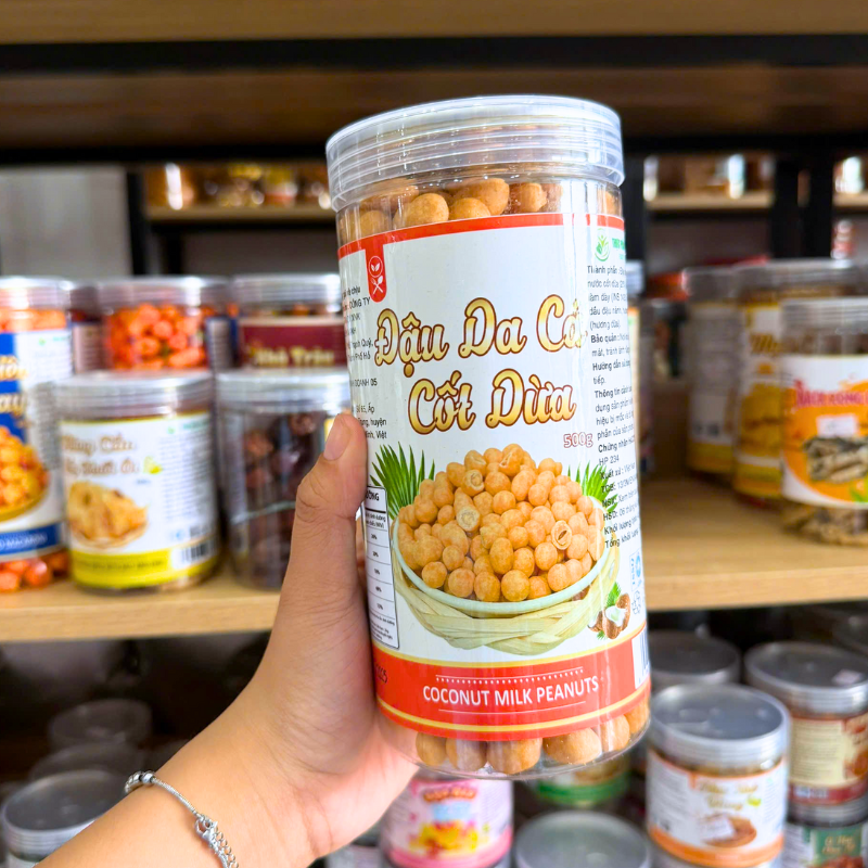 Bán sỉ đậu phộng da cá cốt dừa thơm ngon 500g hộp pet giá rẻ trên toàn quốc