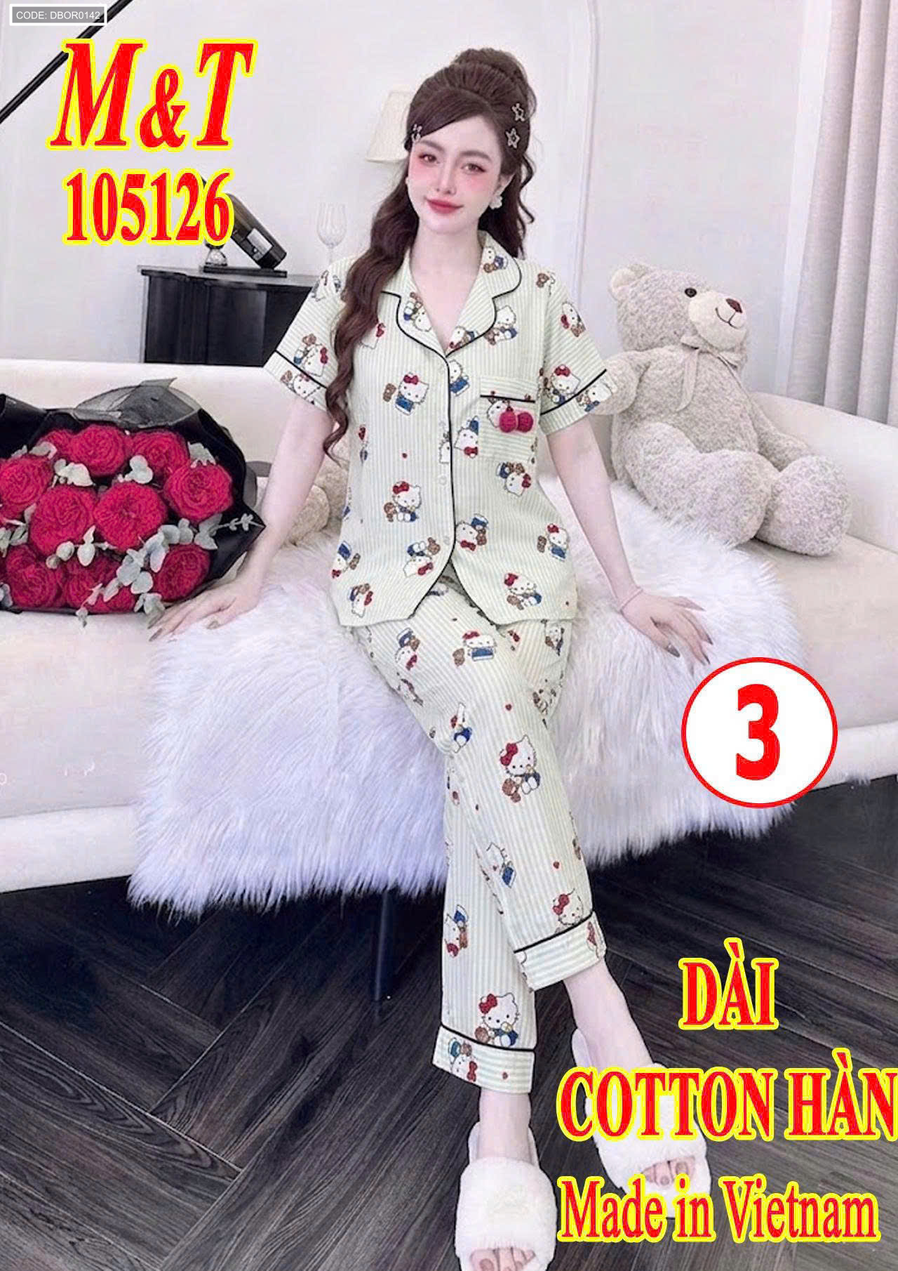 Đồ bộ nữ pijama chất cotton hàn không giãn