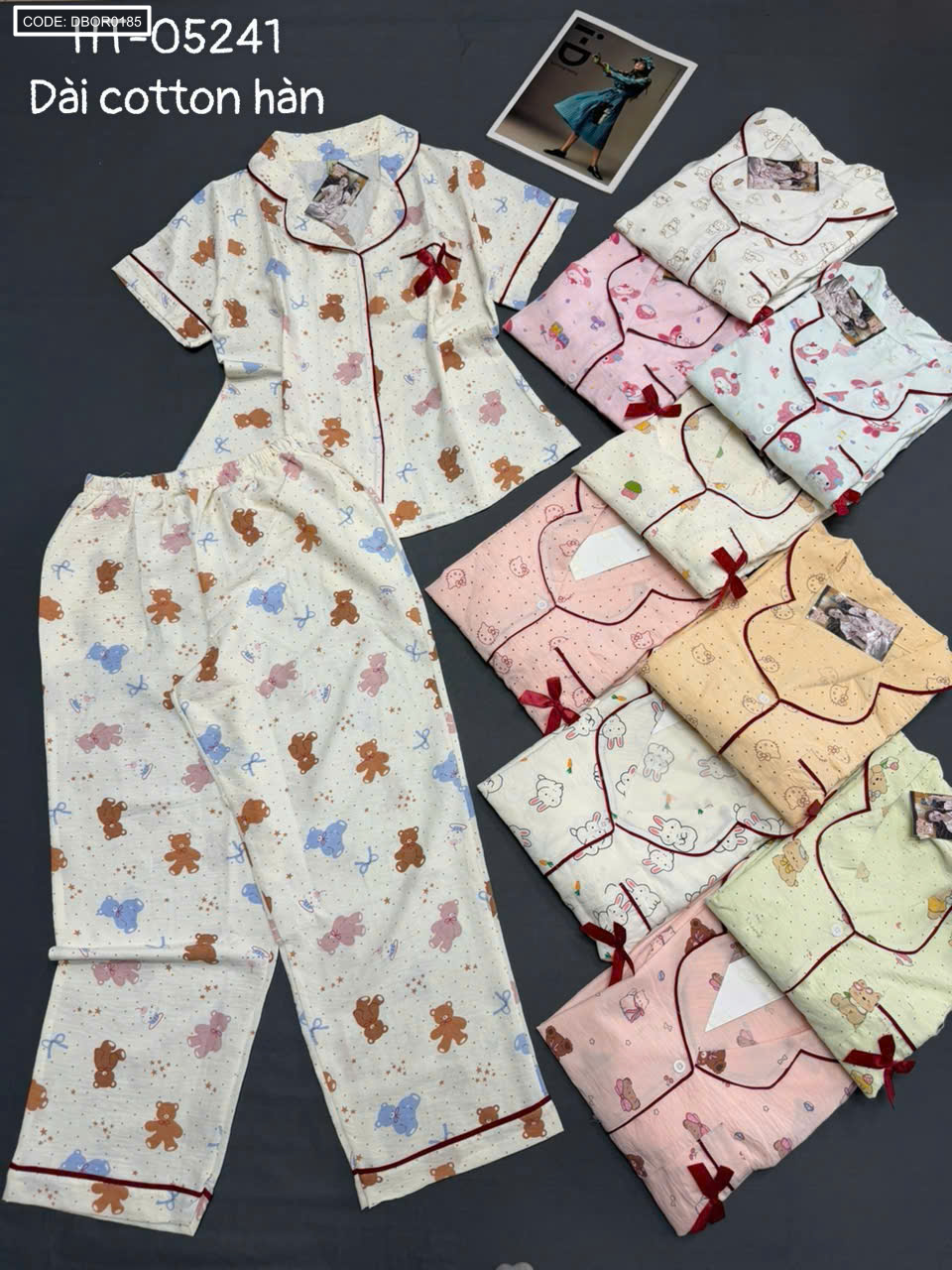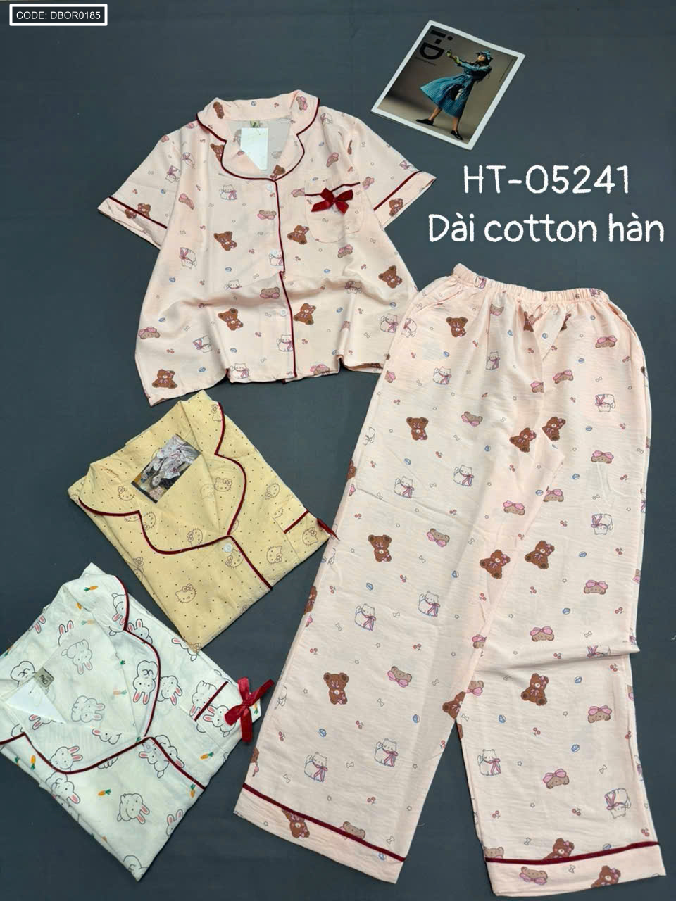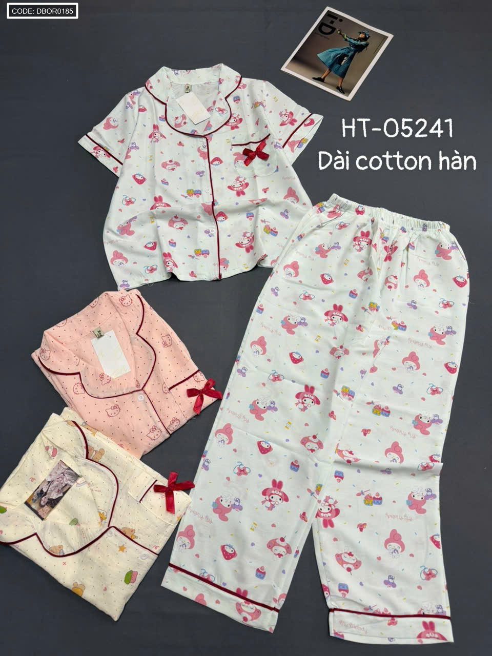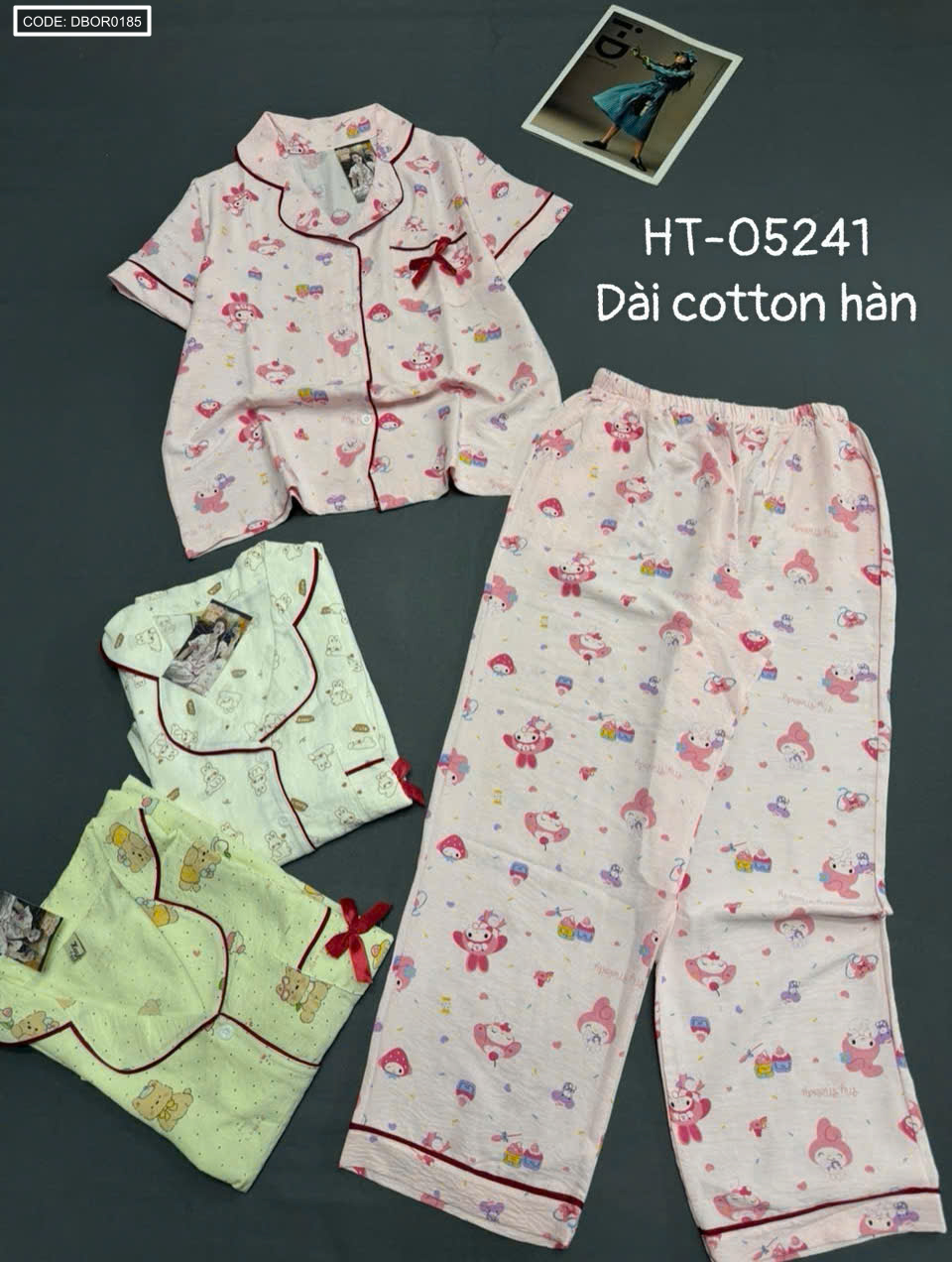 Bán sỉ đồ bộ nữ pijama tay ngắn quần dài ht-05241 chất cotton hàn giá rẻ trên toàn quốc