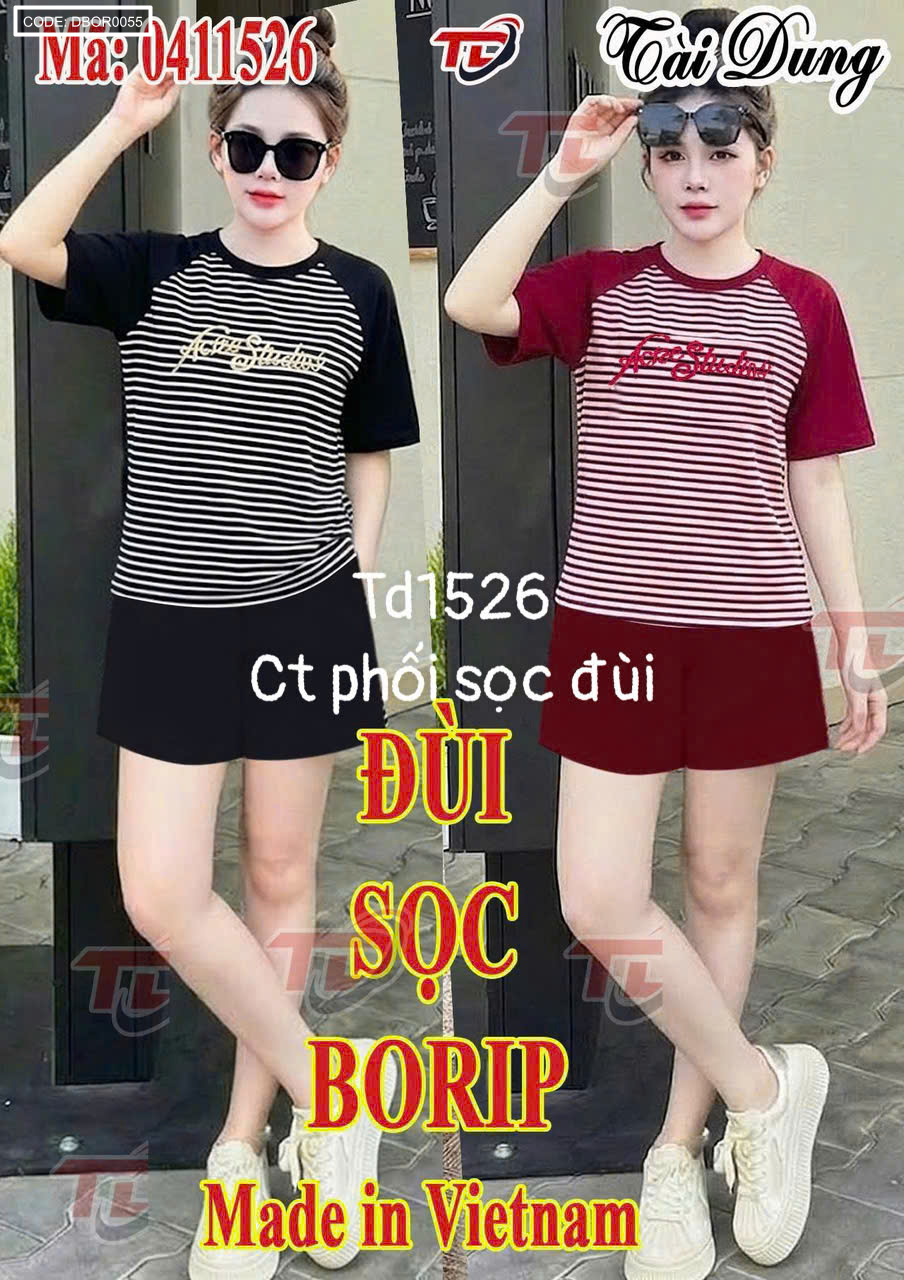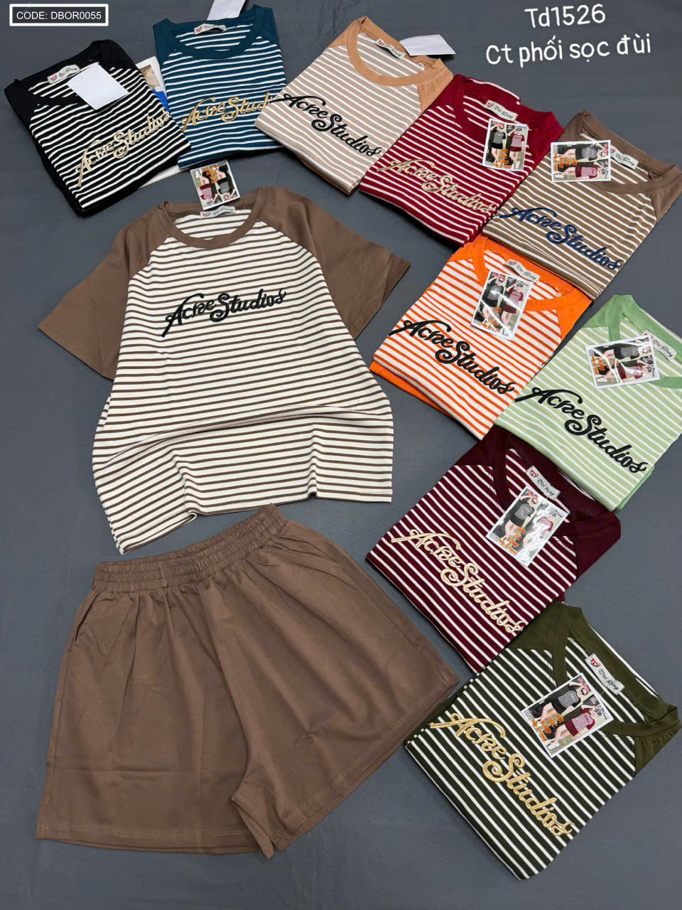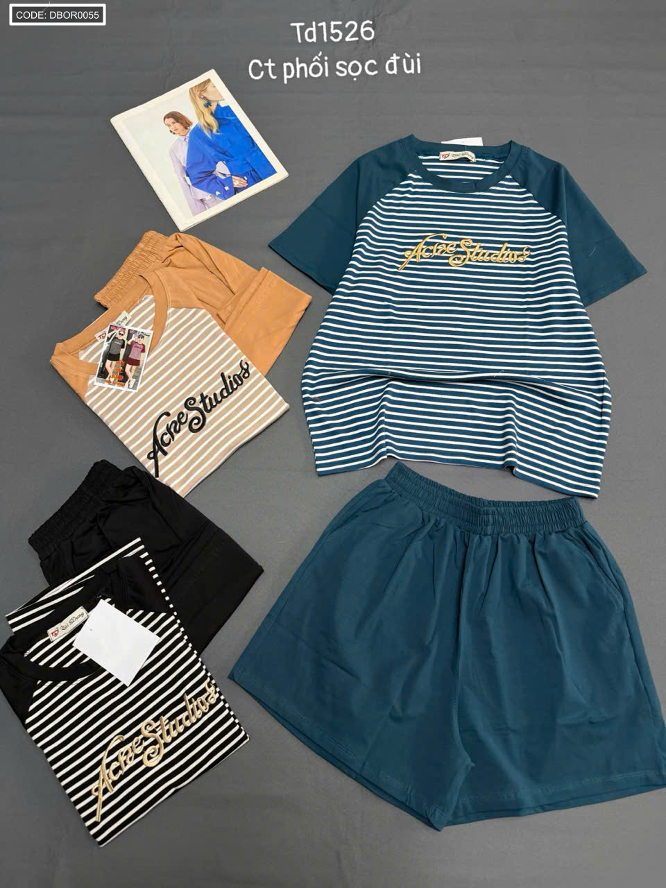 Cung cấp sỉ đồ bộ nữ tay ngắn quần đùi phối sọc td1526 chất lượng tốt giá tận gốc