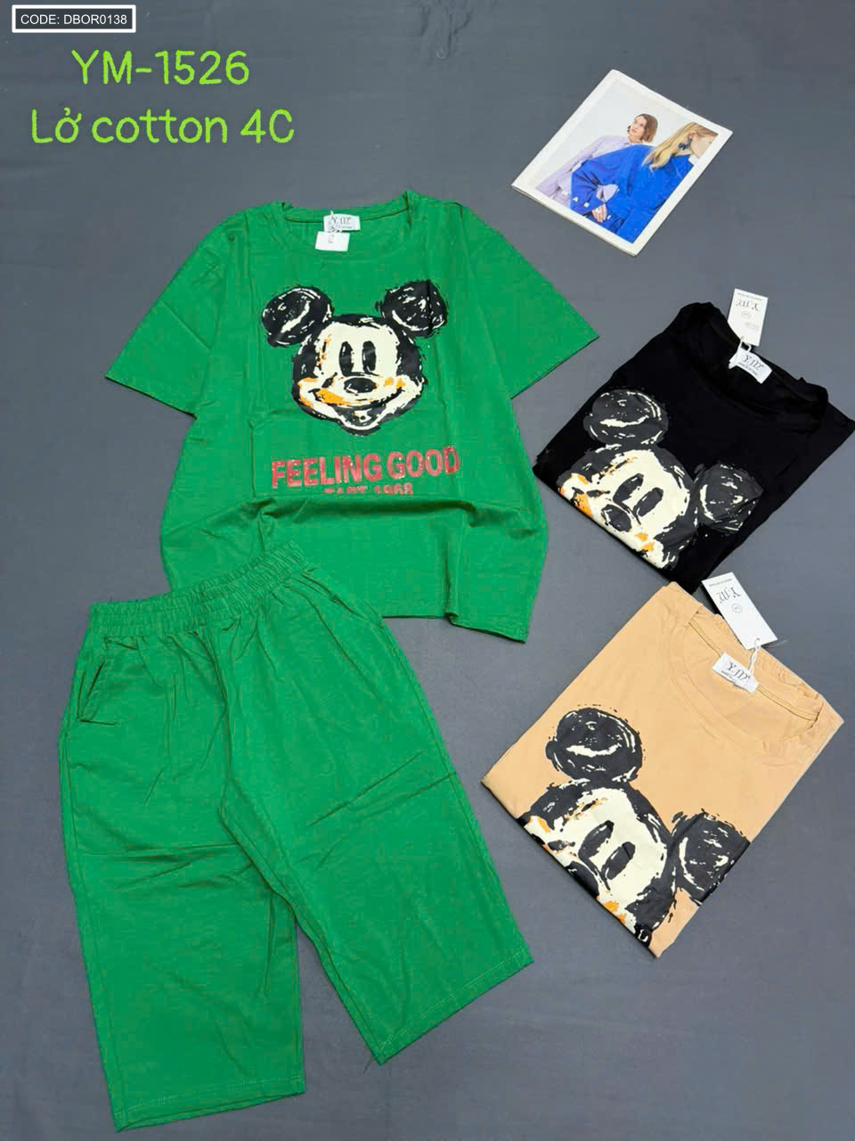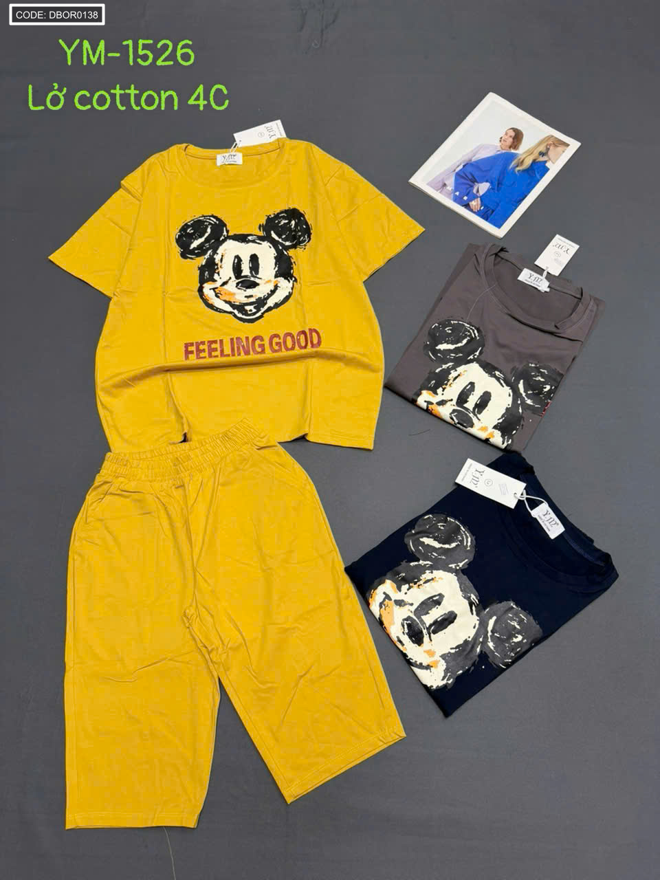 Cung cấp sỉ đồ bộ nữ tay ngắn quần lững in hình mickey chất lượng tốt giá tận gốc
