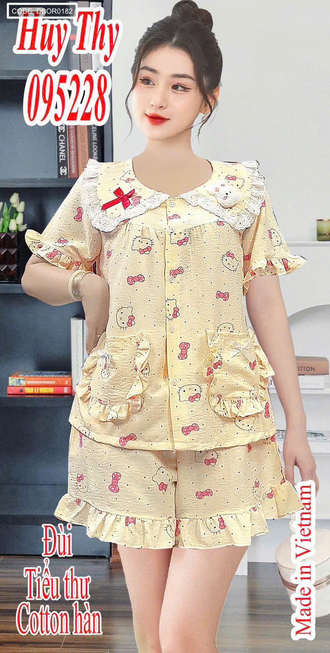 Giá sỉ đồ bộ nữ áo cổ sen quần đùi HT-95228