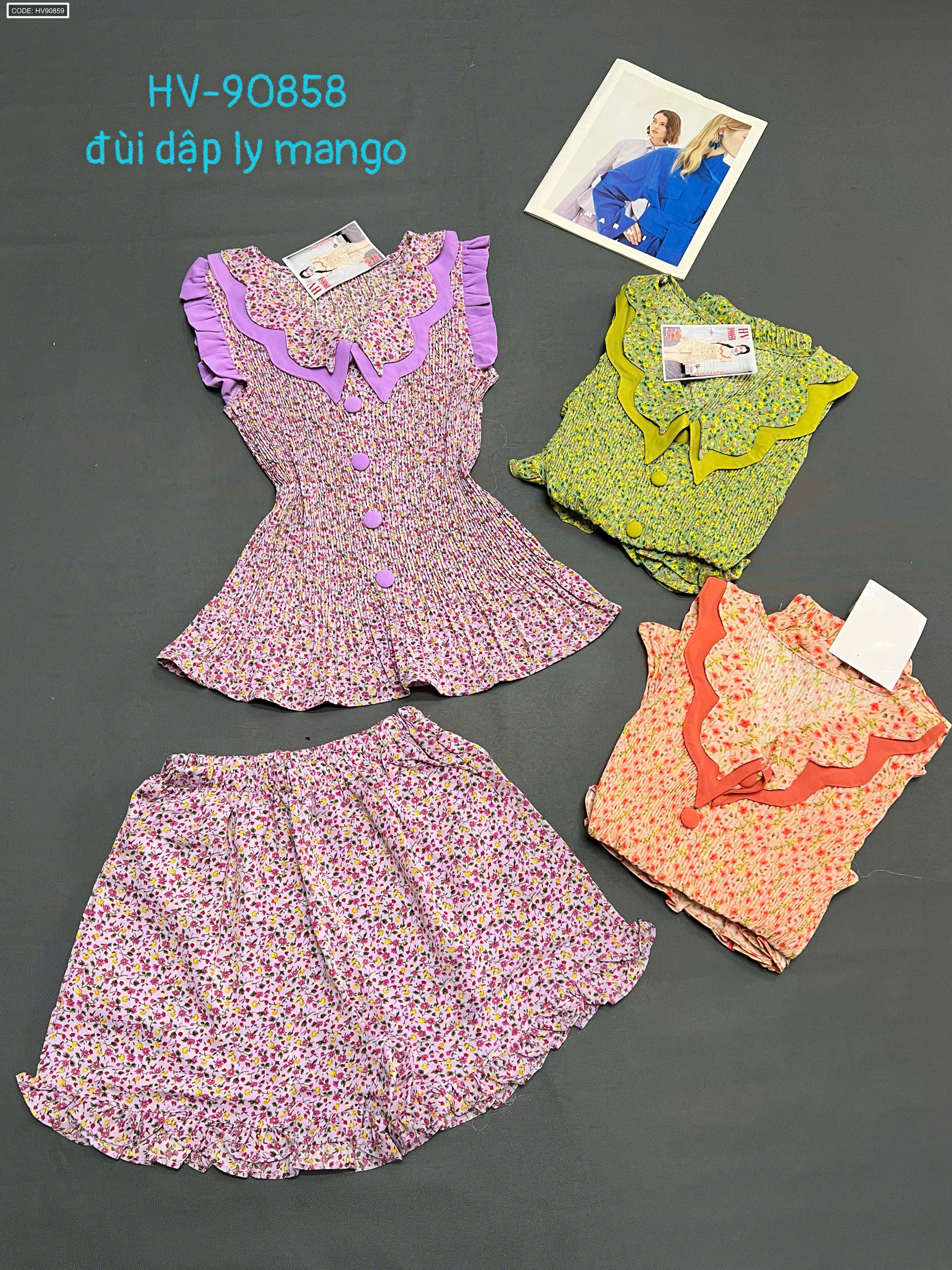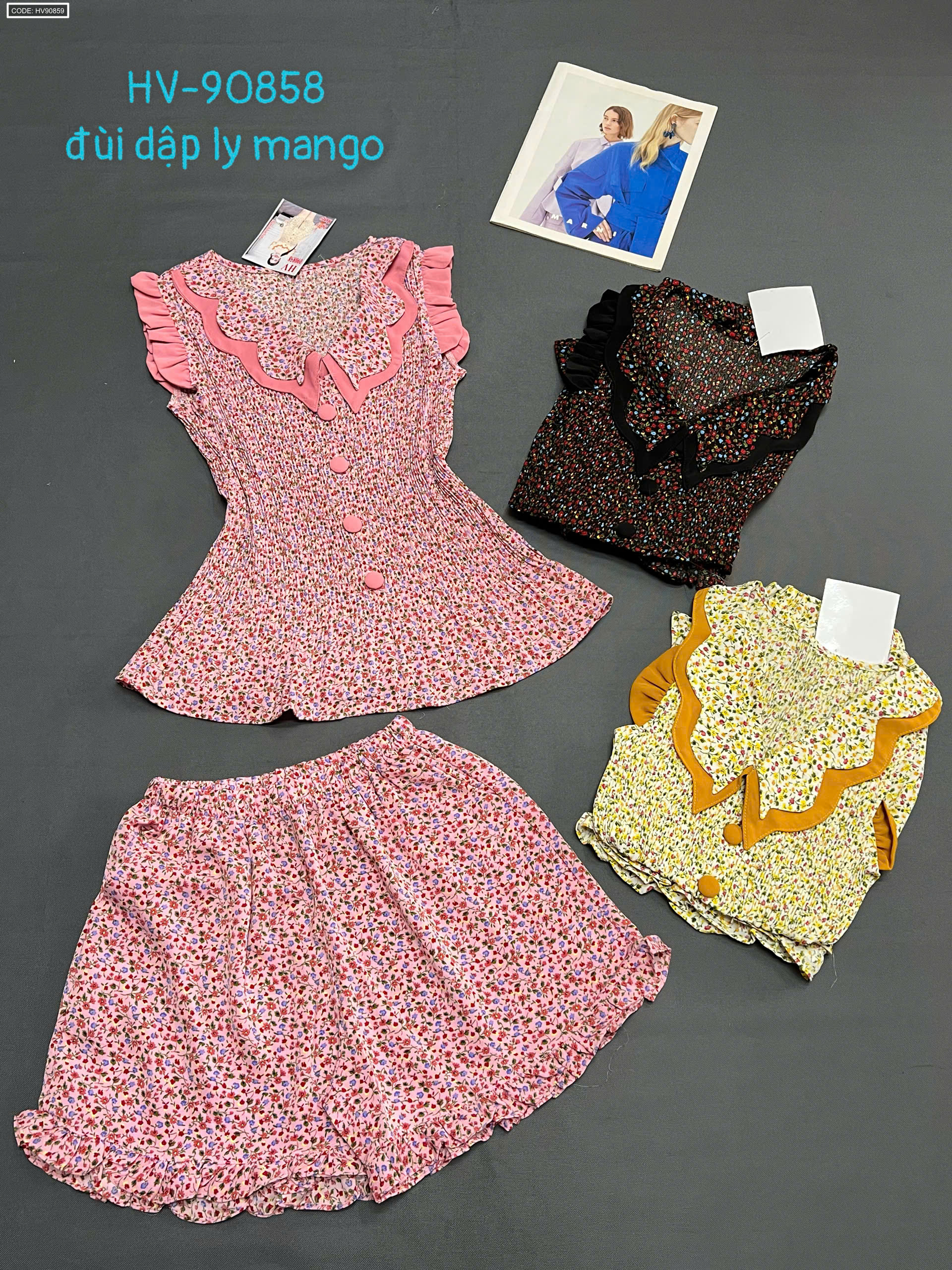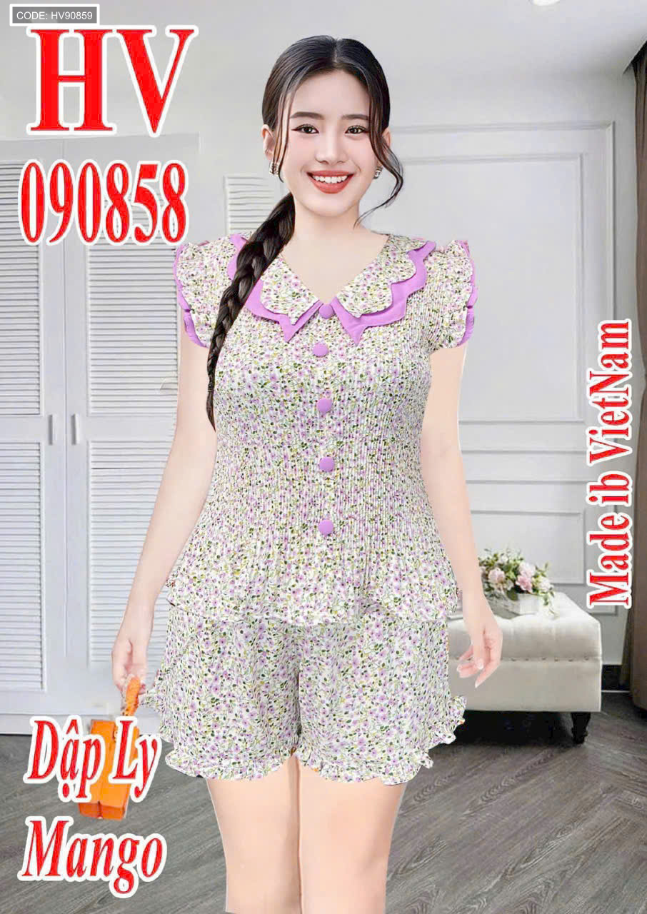 Chuyên sỉ giá sỉ đồ bô nữ quần đùi dập li hv-90858 giá gốc tại TPHCM