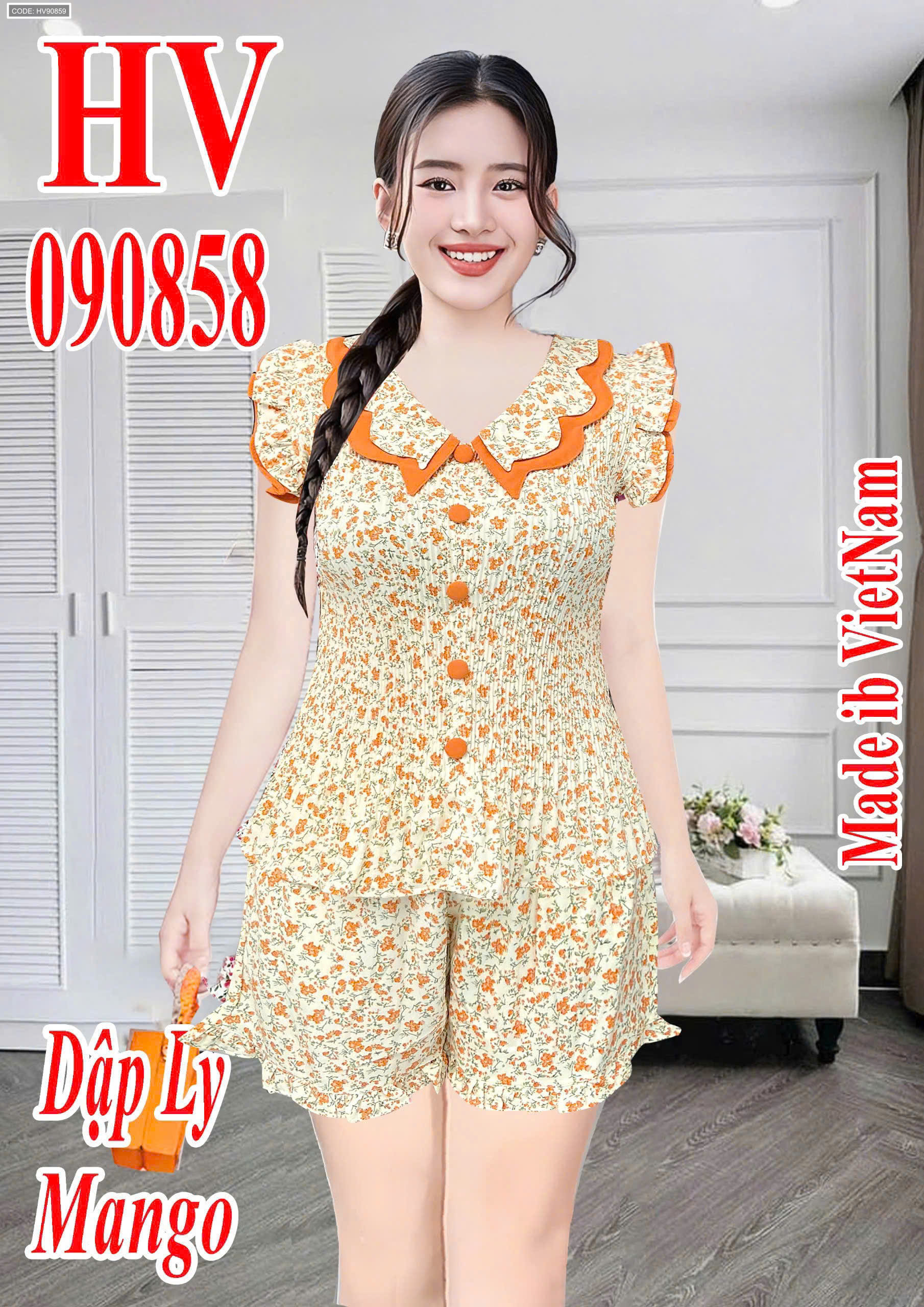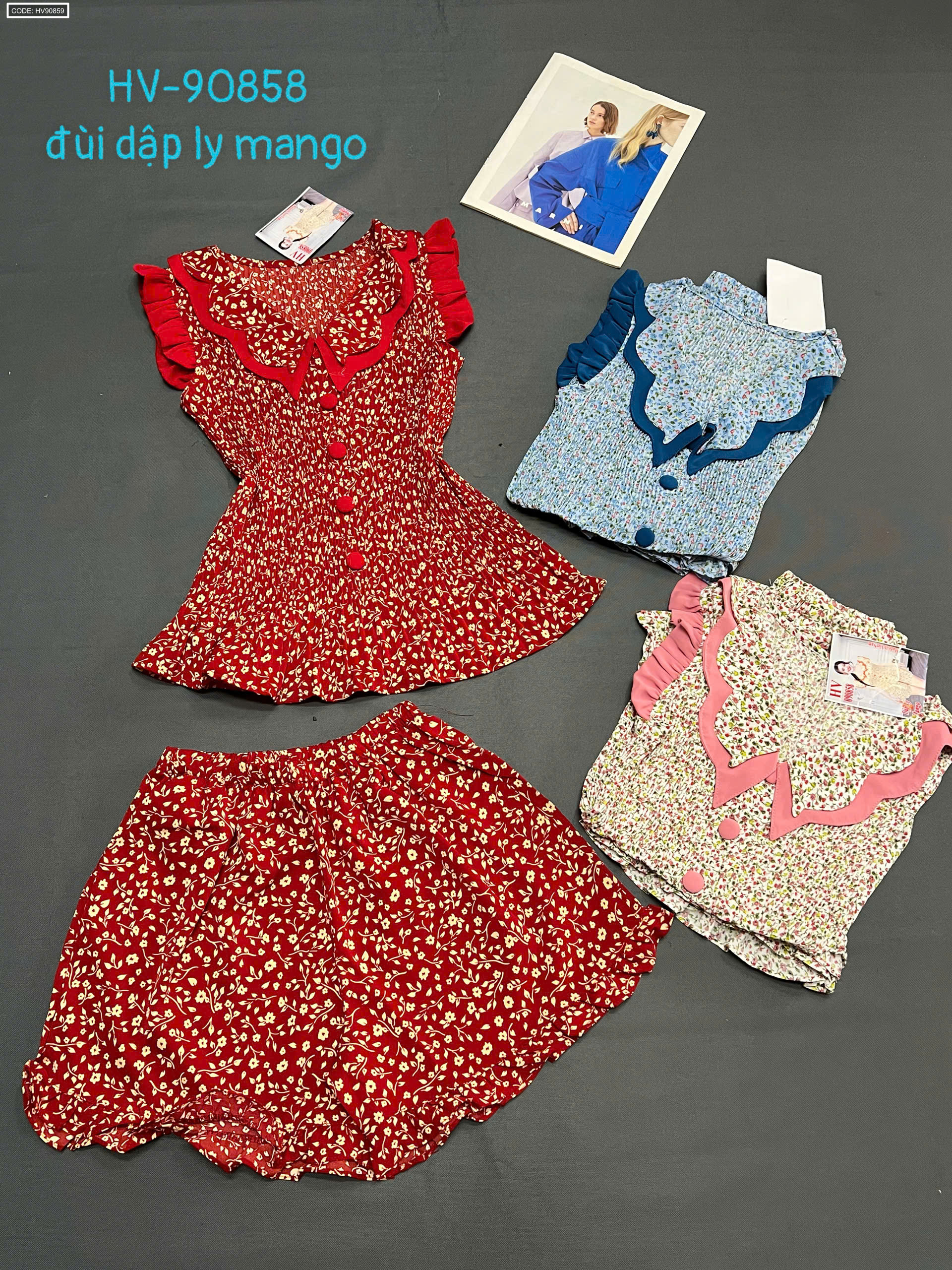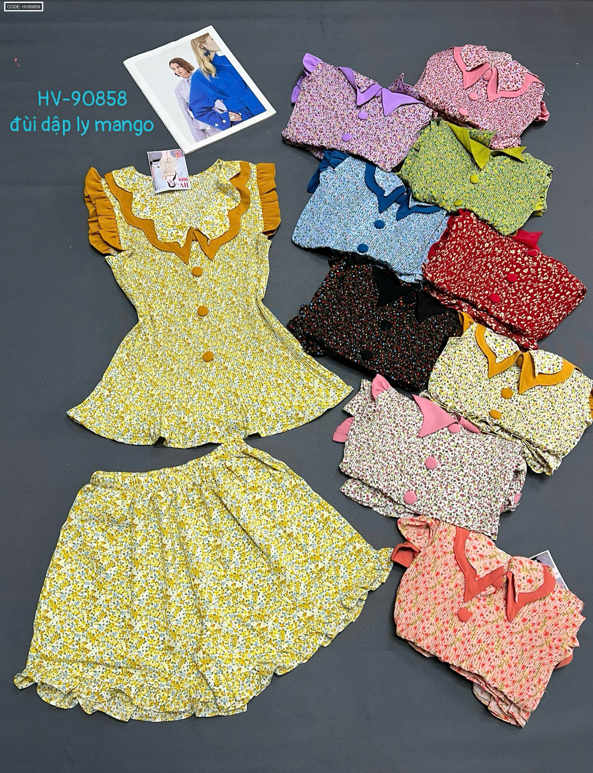 Chuyên sỉ giá sỉ đồ bô nữ quần đùi dập li hv-90858 giá gốc tại TPHCM