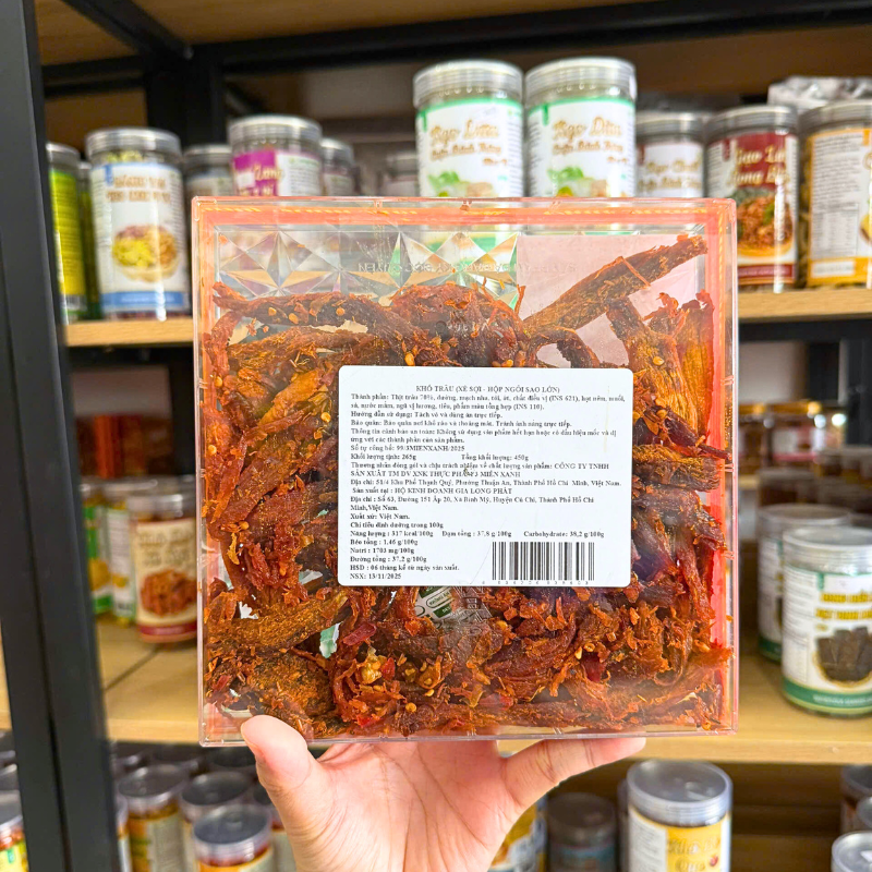 Giá sỉ khô Trâu Xé Sợi – Khô Tẩm Vị Bò 450g Hộp Ngôi Sao Lớn