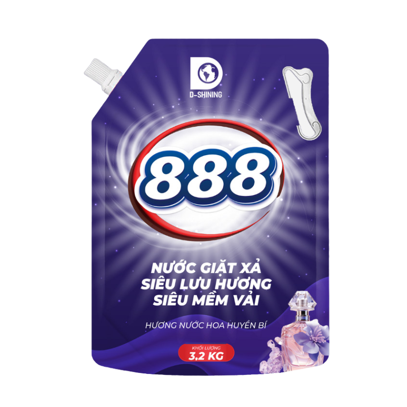Bán sỉ giá sỉ nước giặt xả cao cấp 888 d-shining hương nước hoa 3,2kg – túi màu tím giá rẻ trên toàn quốc