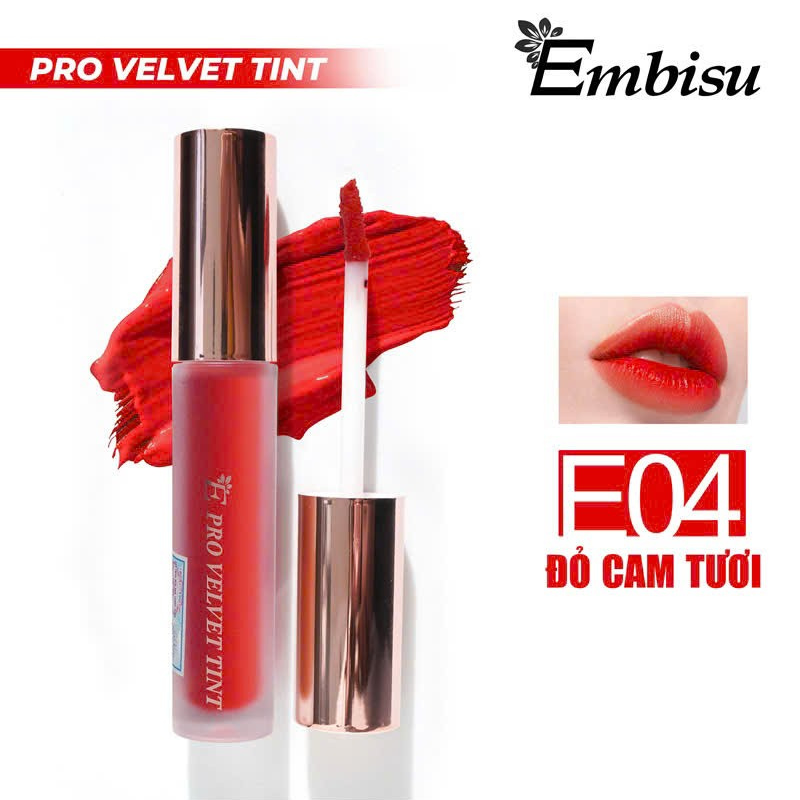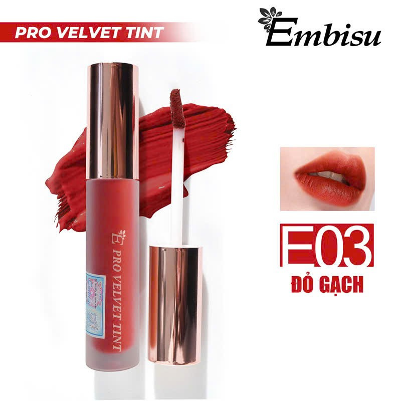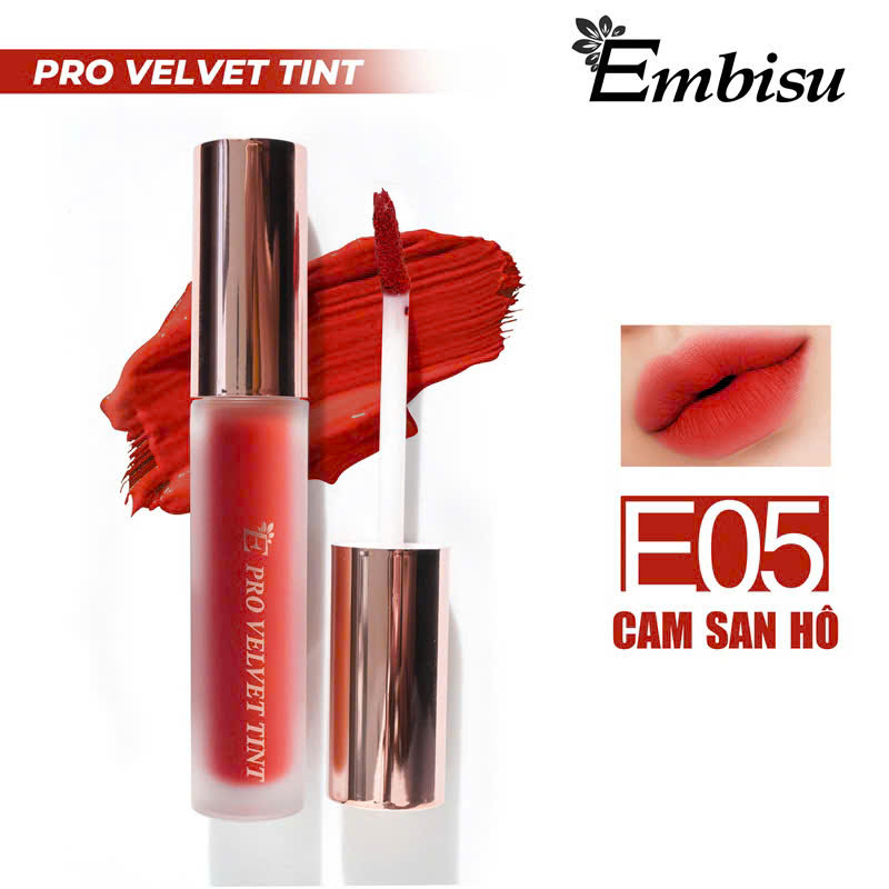 • Son môi Embisu Pro Vel Tint chất kem nhung lì – bảng 10 màu son thời trang dễ dùng