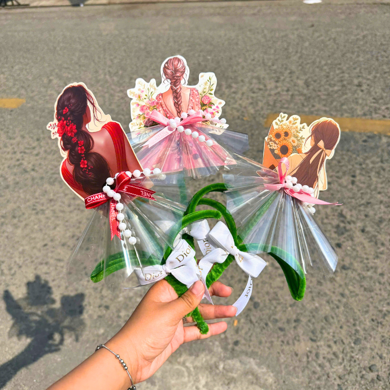 Hoa Gài Tiền – Hoa Gắn Tiền – Hoa Đựng Cô Gái Trong Suốt – Ngẫu Nhiên