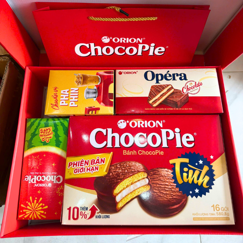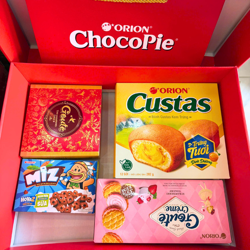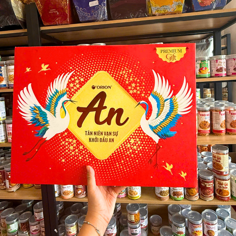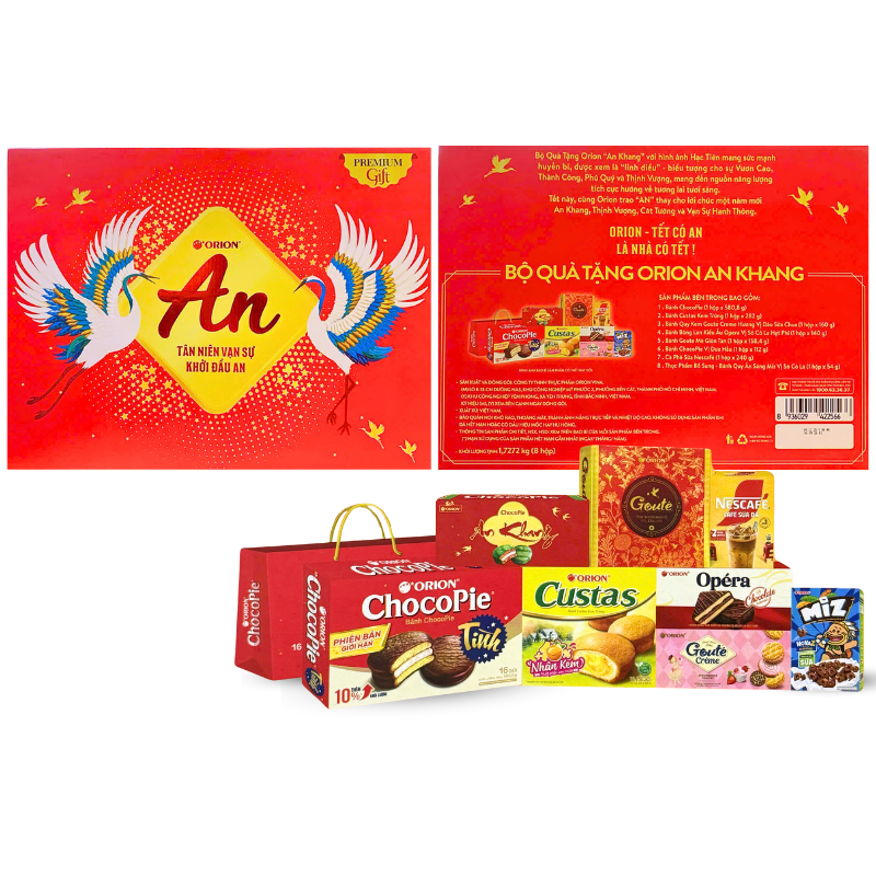 Bán sỉ hộp bánh tết orion an khang – bộ quà tết con hạt orion an khang hộp 1,7272g gồm 8 món giá rẻ trên toàn quốc
