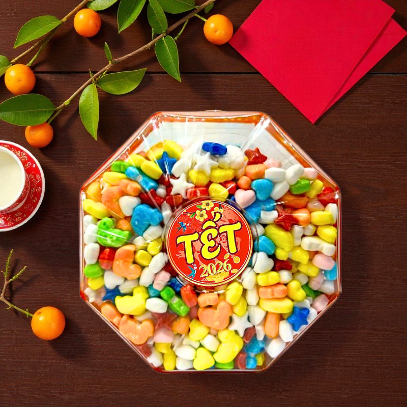 Hộp Kẹo Ngũ Sắc Bát Giác 300G Hộp Quà Tết 2026