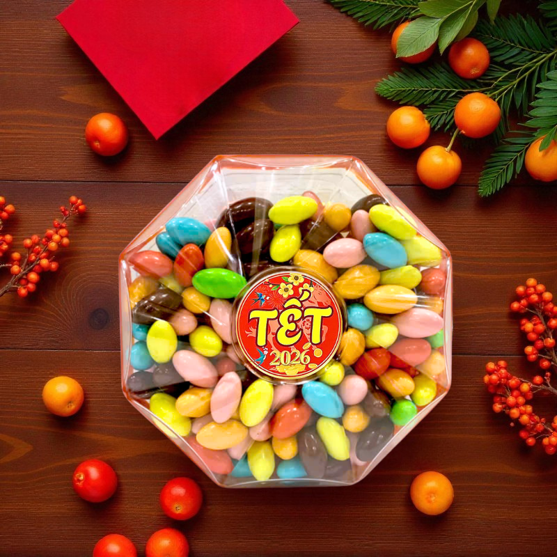 Hộp Kẹo Nhộng Socola Bát Giác 300G Hộp Quà Tết 2026