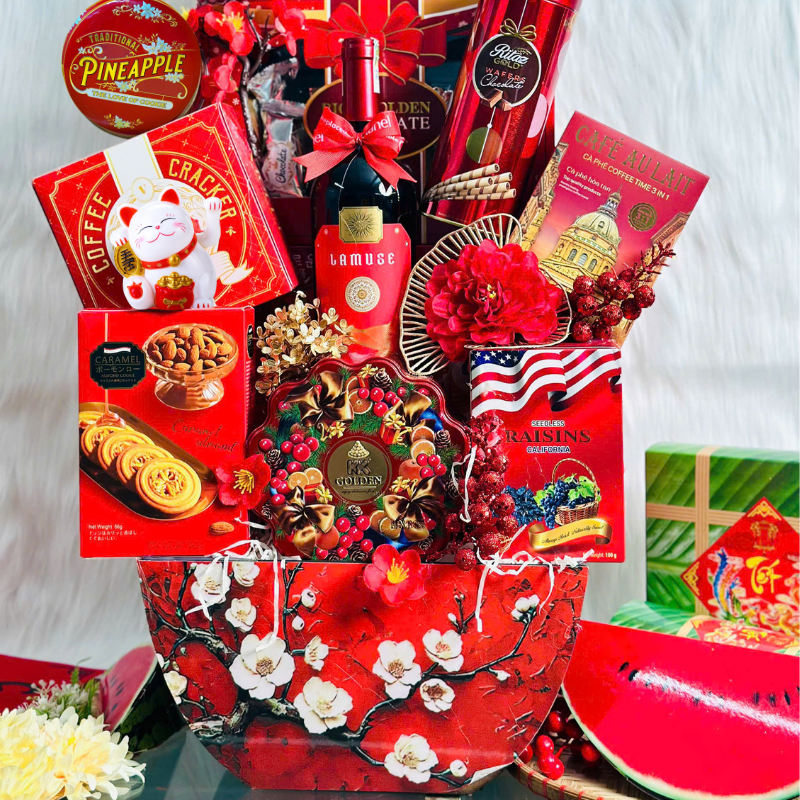Bộ Giỏ Quà Tết Cao Cấp được thiết kế 3 tone màu: