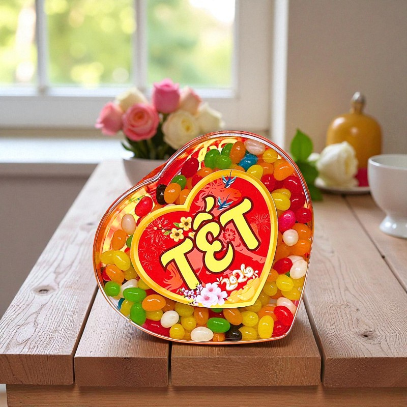 Kẹo Dẻo Bi 350g - Hộp Trái Tim Hộp Quà Tết 2026