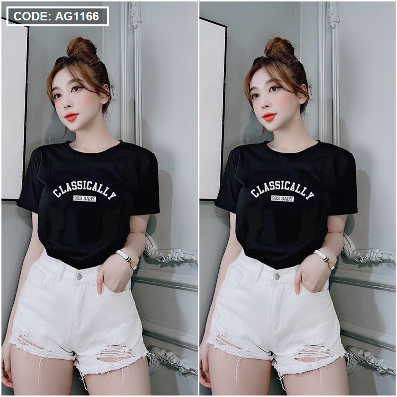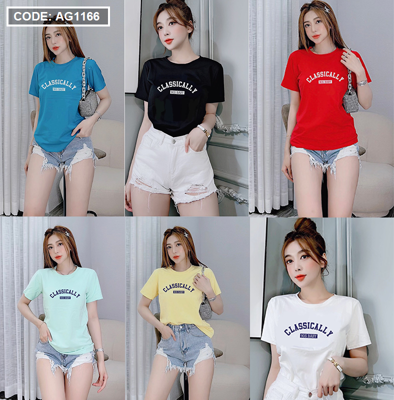 Bỏ sỉ kho sỉ áo thun thái nữ form rộng in chữ classically giá sỉ tận gốc