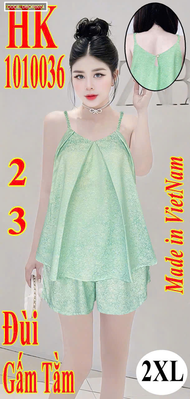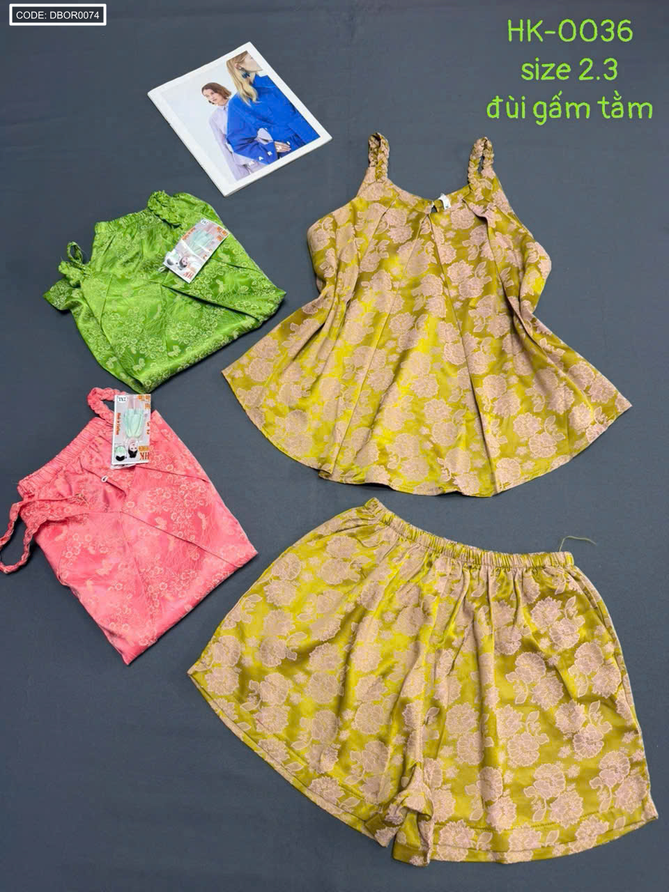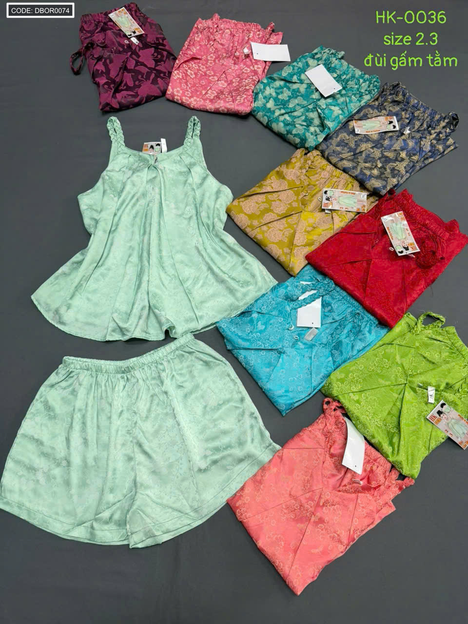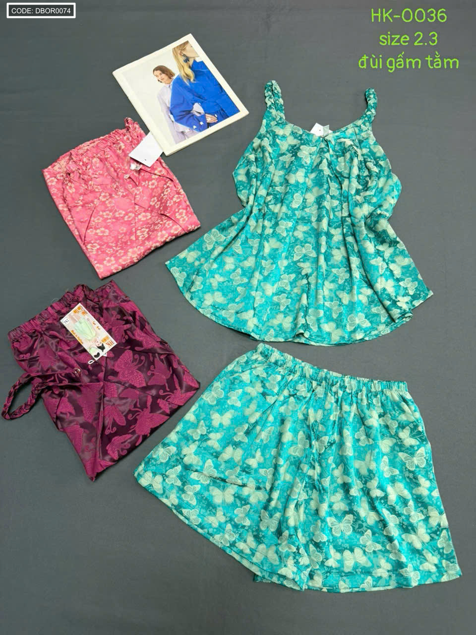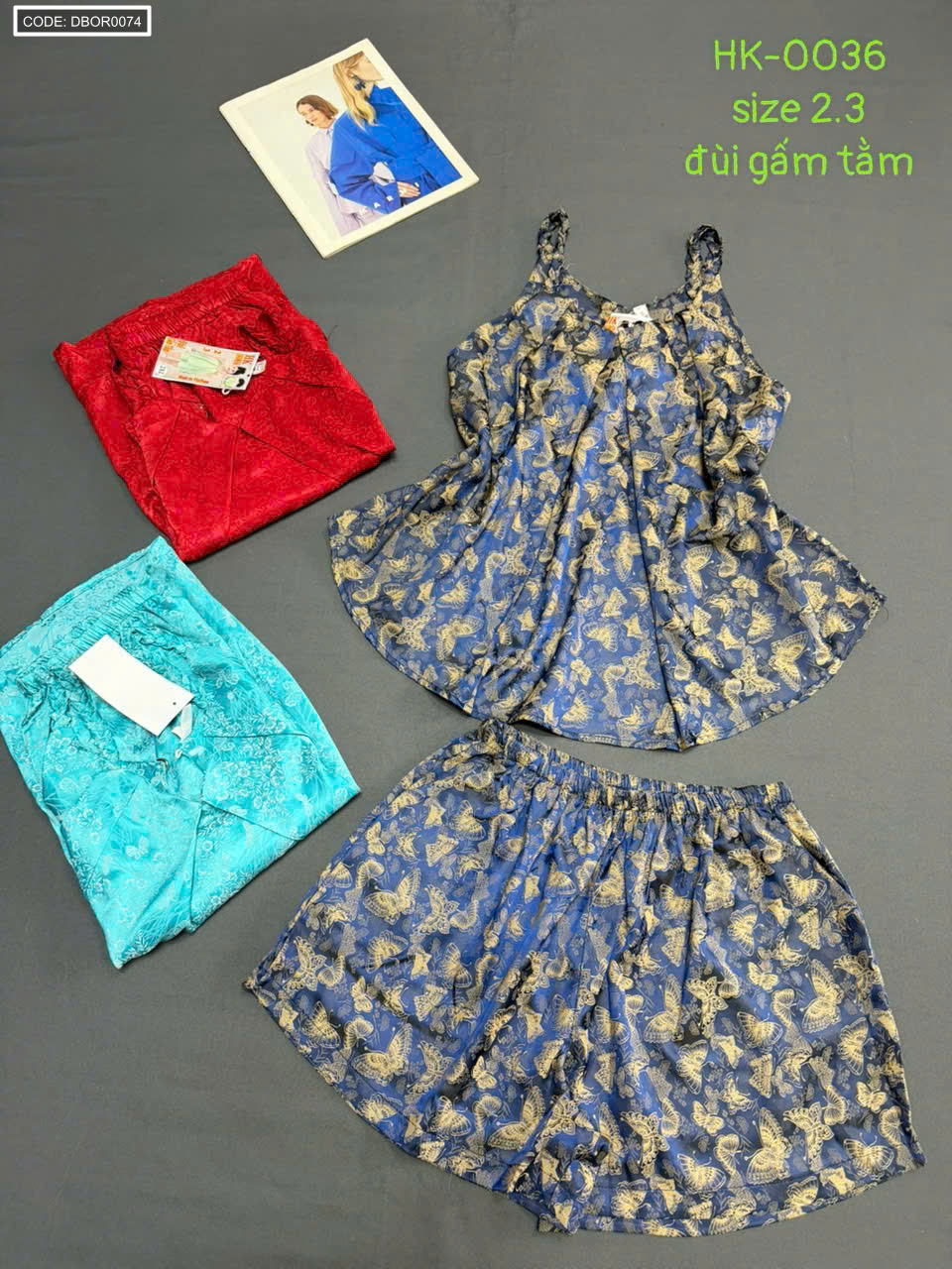 Kho sỉ đồ bộ nữ 2 dây sát nách vải gấm quần đùi HK 0036