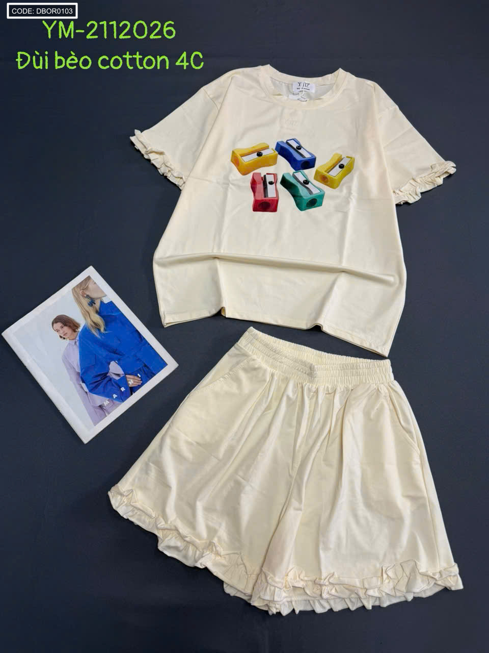 Kho sỉ đồ bộ thun nữ áo tay ngắn quần đùi bèo chất cotton 4 chiều