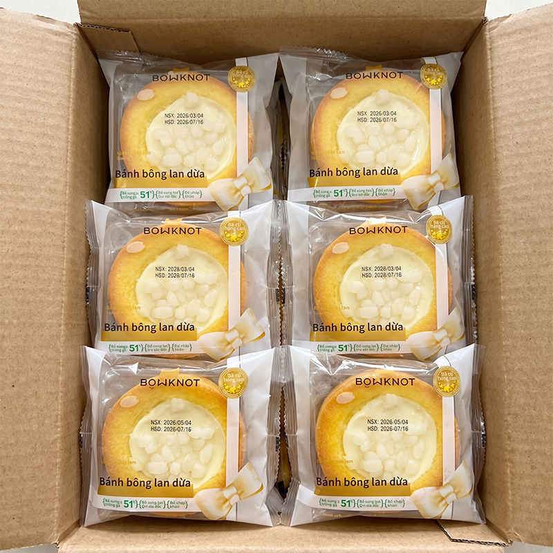 Bán sỉ mua sỉ 1 thùng bánh bông lan bowknot dừa hình tart – thùng 24 cái giá rẻ trên toàn quốc