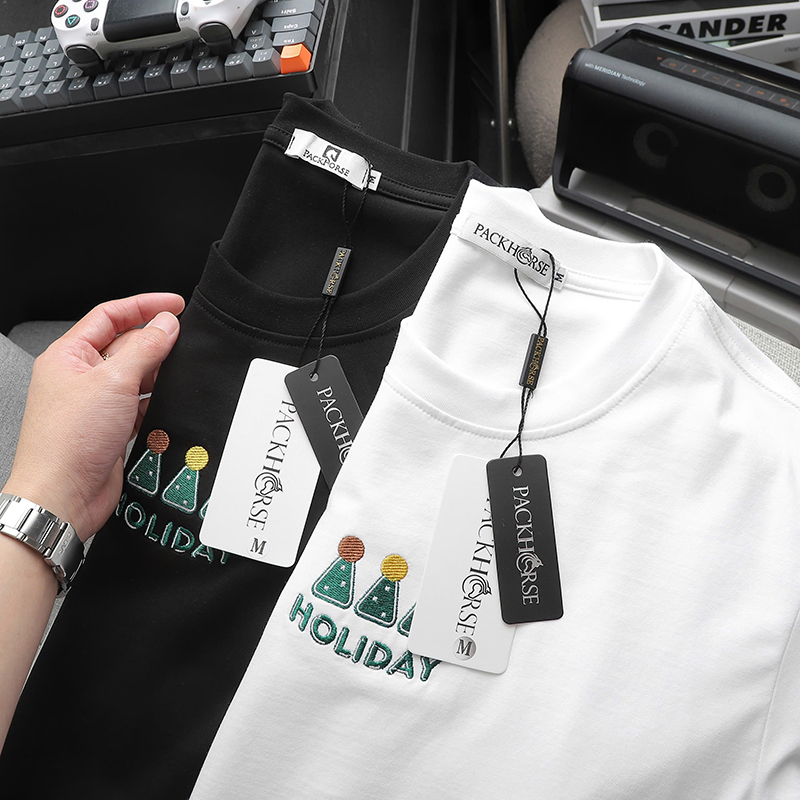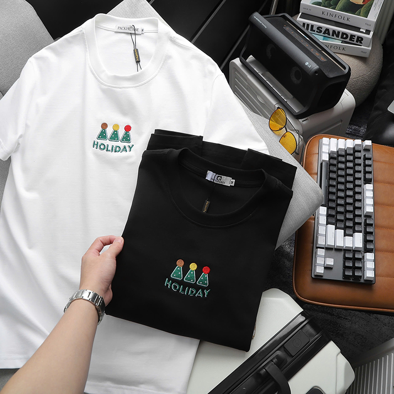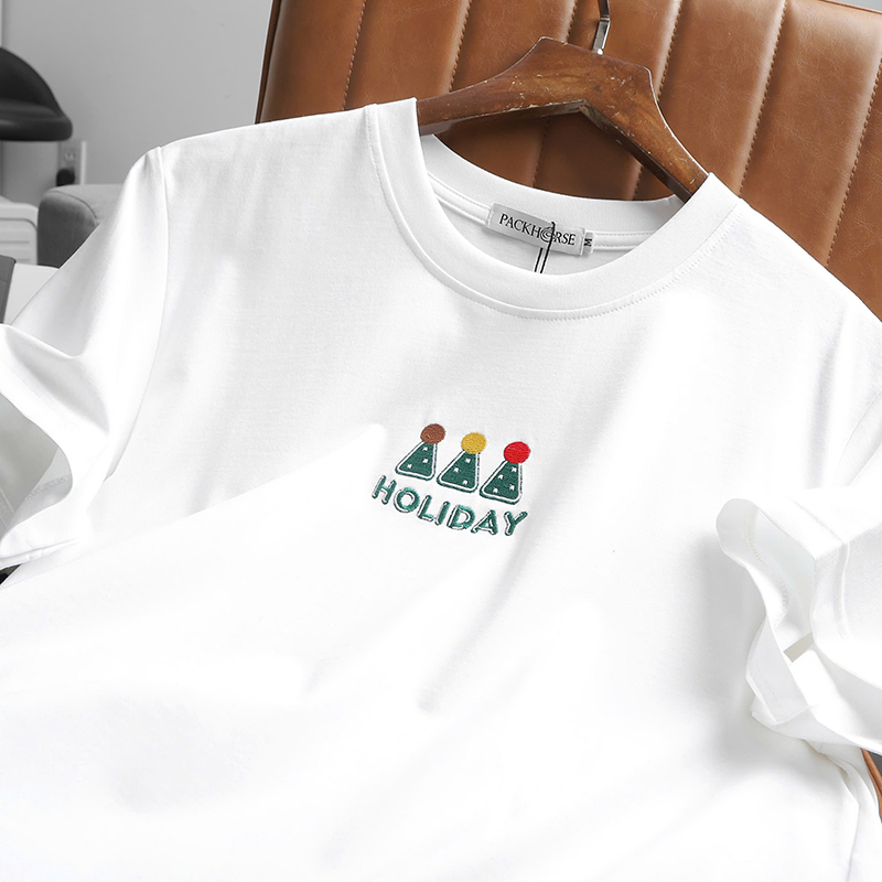 Áo thun nam cổ tròn Pack Horse thêu nổi chữ Holiday là lựa chọn lý tưởng cho các chàng trai yêu thích phong cách năng động và thoải mái.
