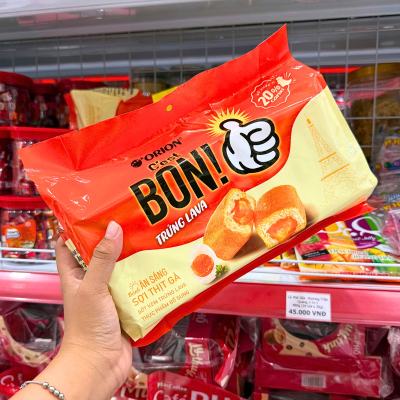 Chuyên sỉ mua sỉ bánh ăn sáng orion c’est bon vị sốt kem trứng lava 162.4g – bịch cam giá gốc tại TPHCM