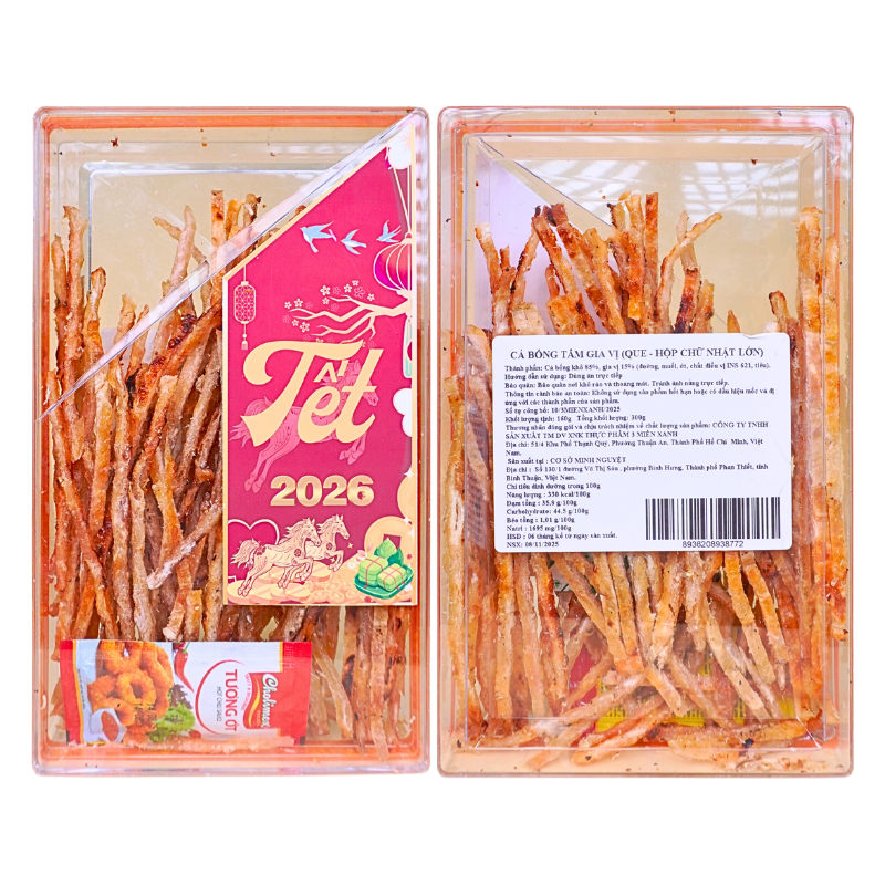 Mua sỉ cá Bống Tẩm Gia Vị Que 300g – Hộp Chữ Nhật Lớn Hộp Quà Tết 2026
