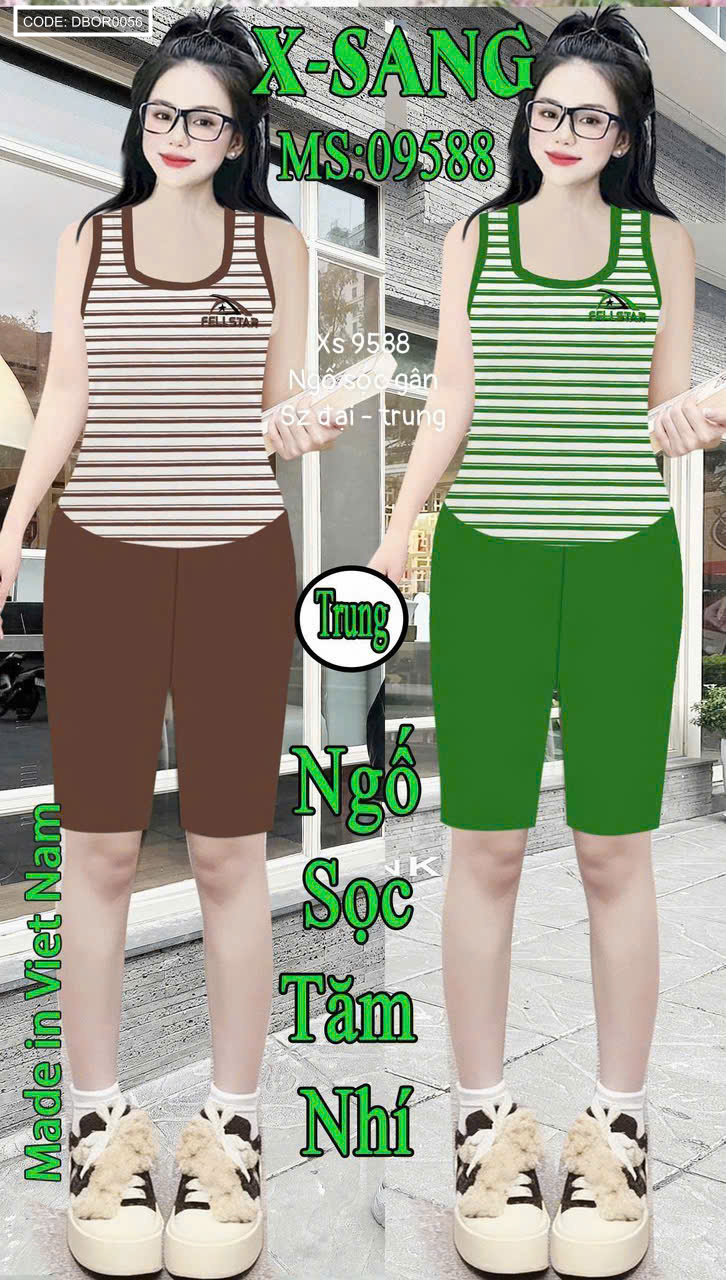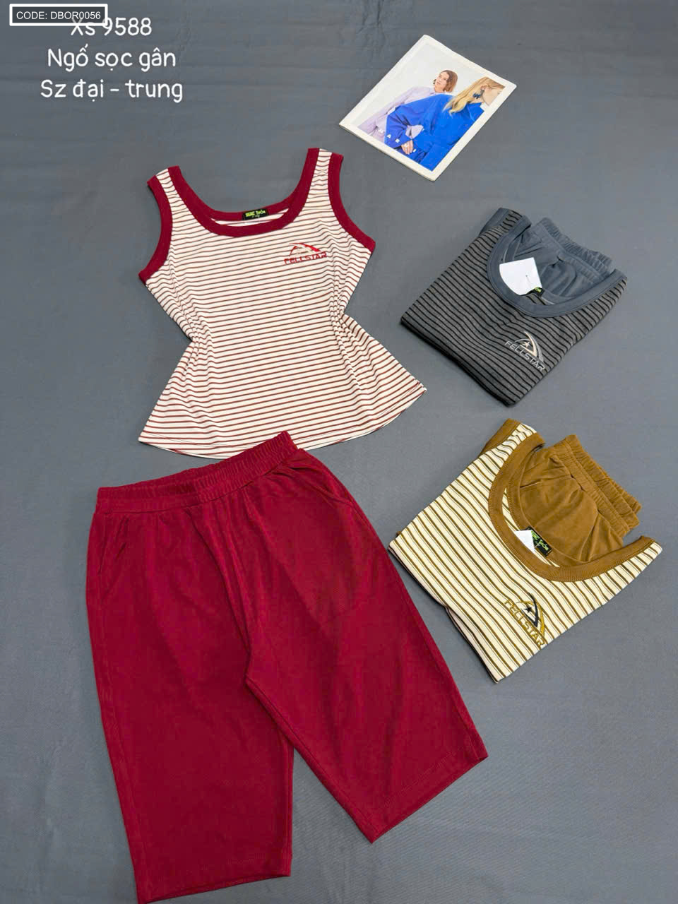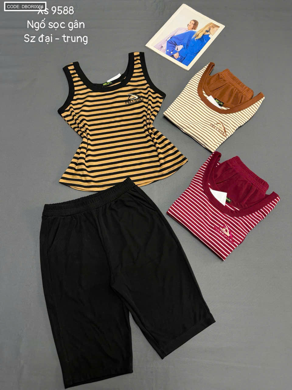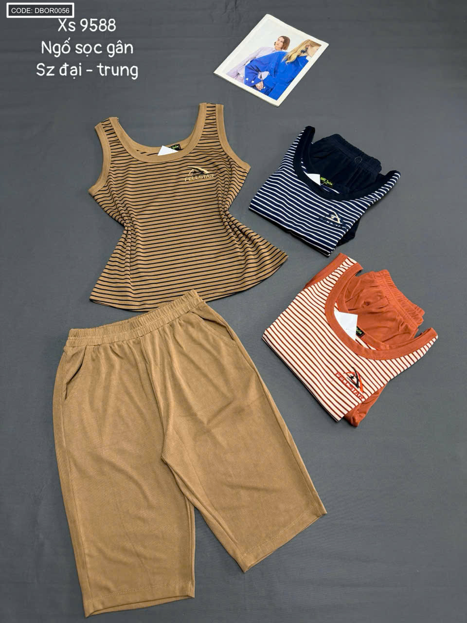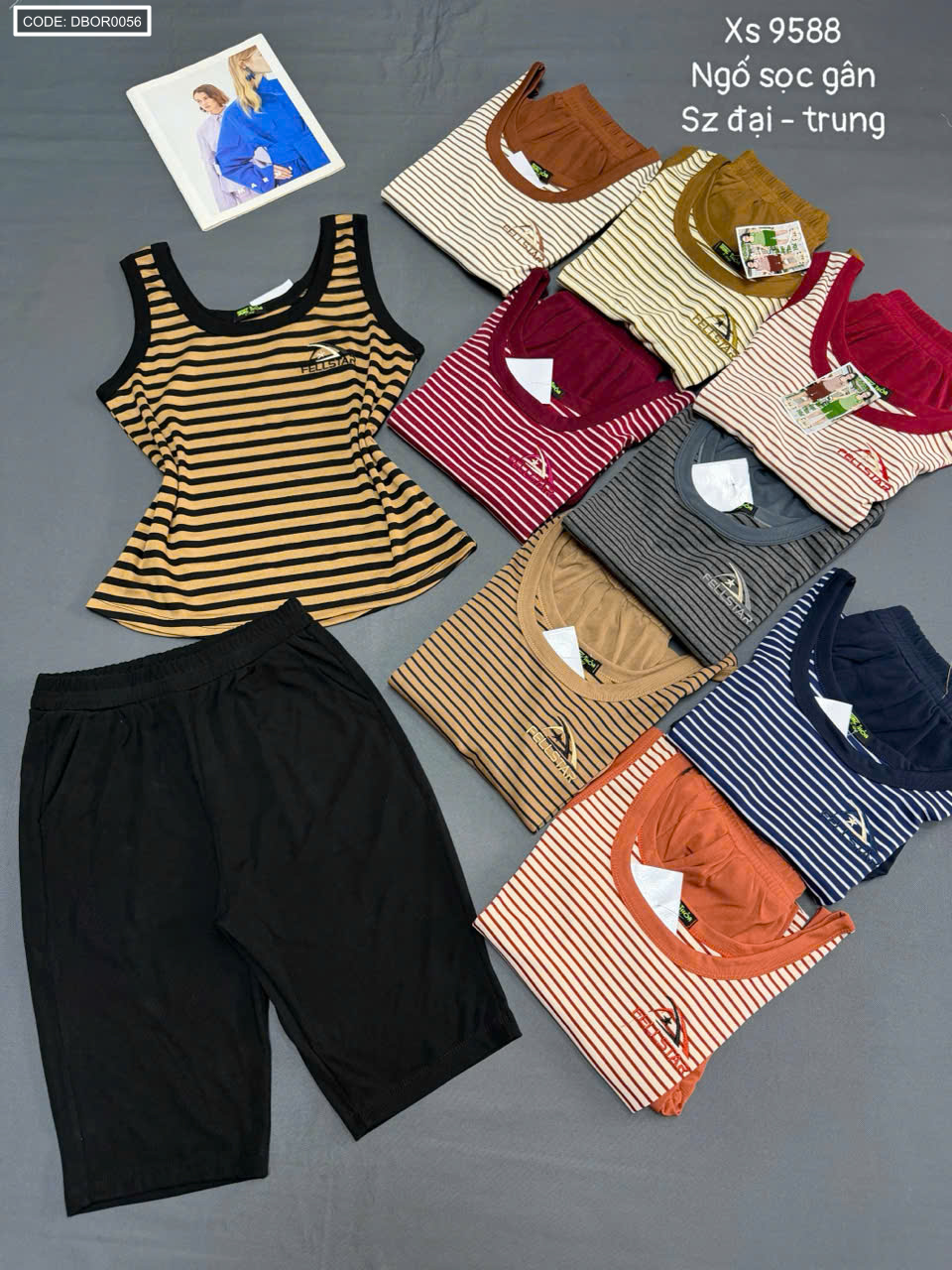 Mua sỉ đồ bộ sát nách quần lững chất thun cotton áo sọc Xs 9588