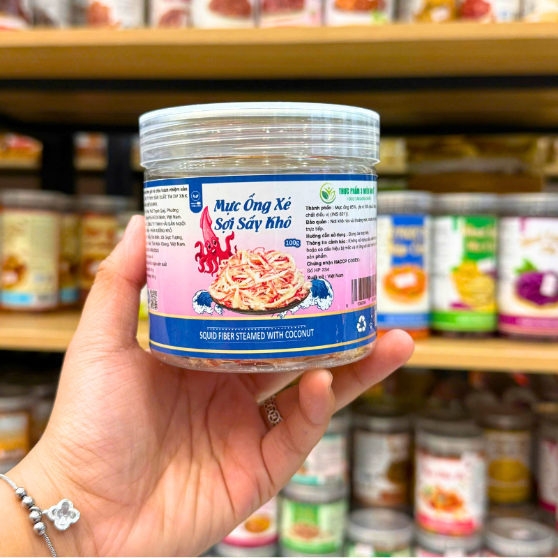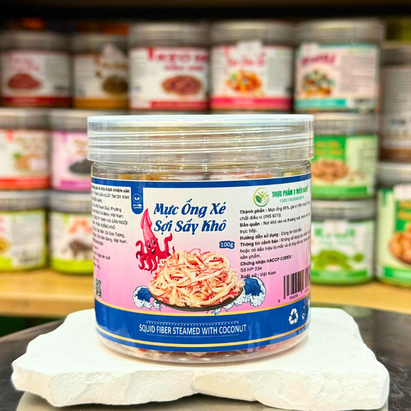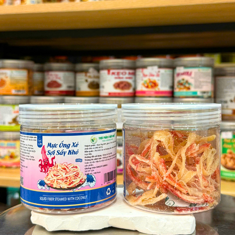 Bán sỉ mực ống xé sợi sấy khô (mực dừa) mini 100g – hộp pet giá rẻ trên toàn quốc