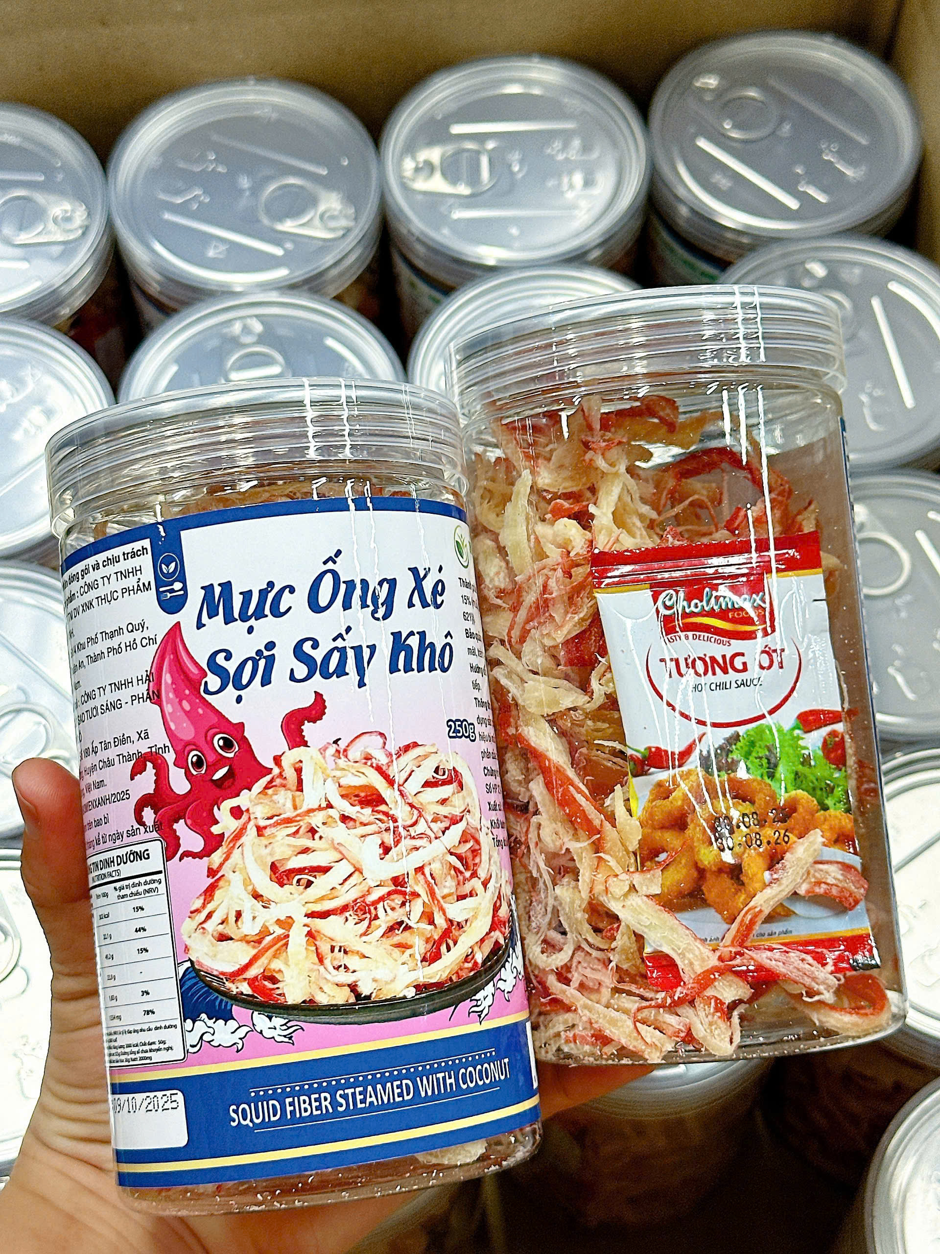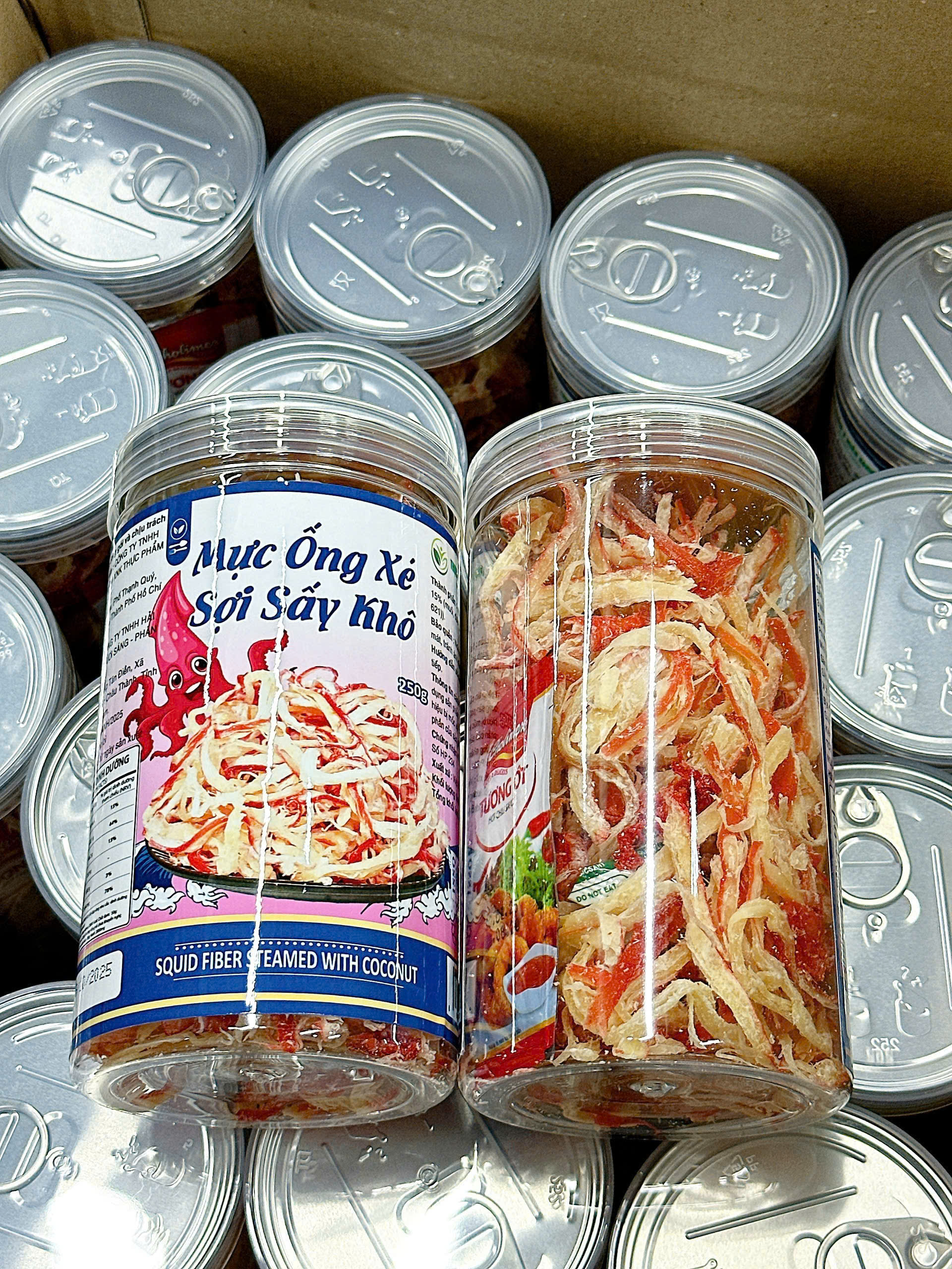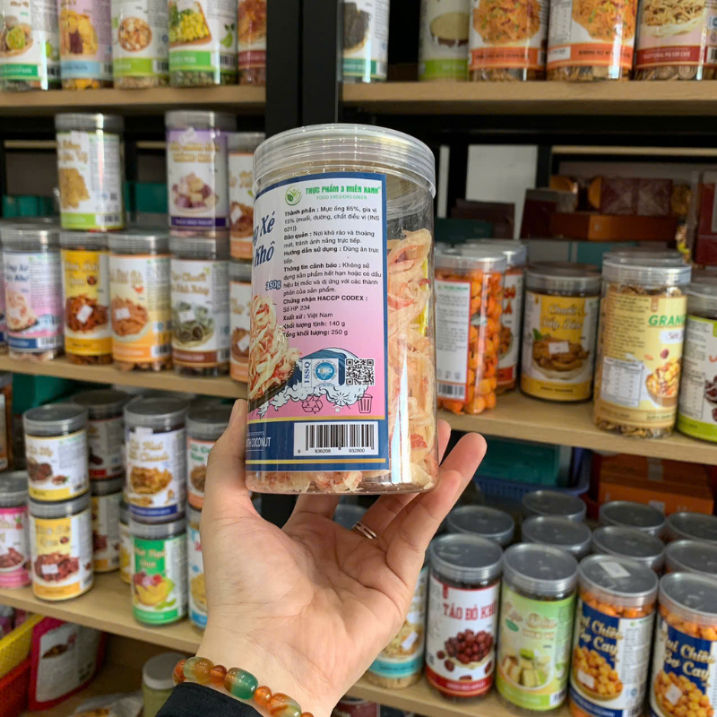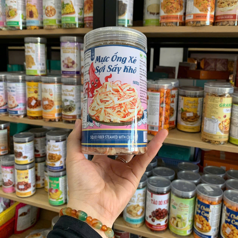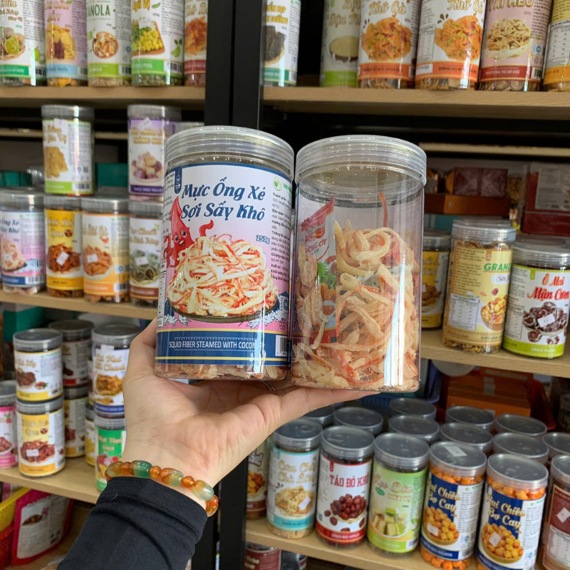 Bỏ sỉ nguồn sỉ mực ống xé sợi sấy khô – mực dừa xé sợi thơm ngon 250g – hũ pet giá sỉ tận gốc