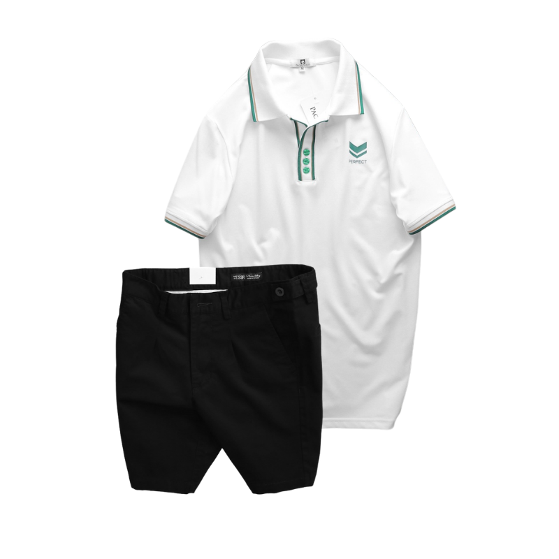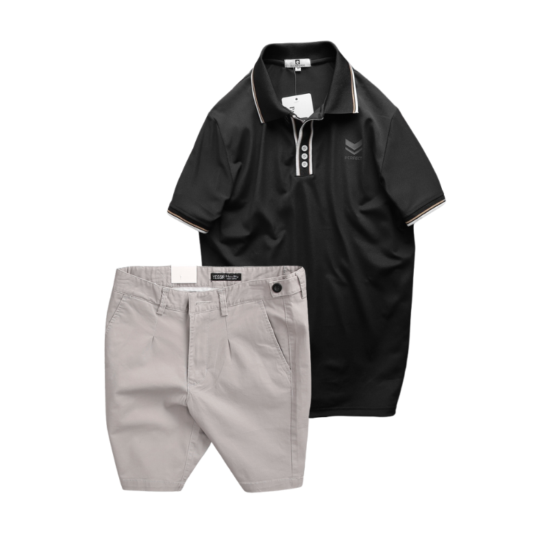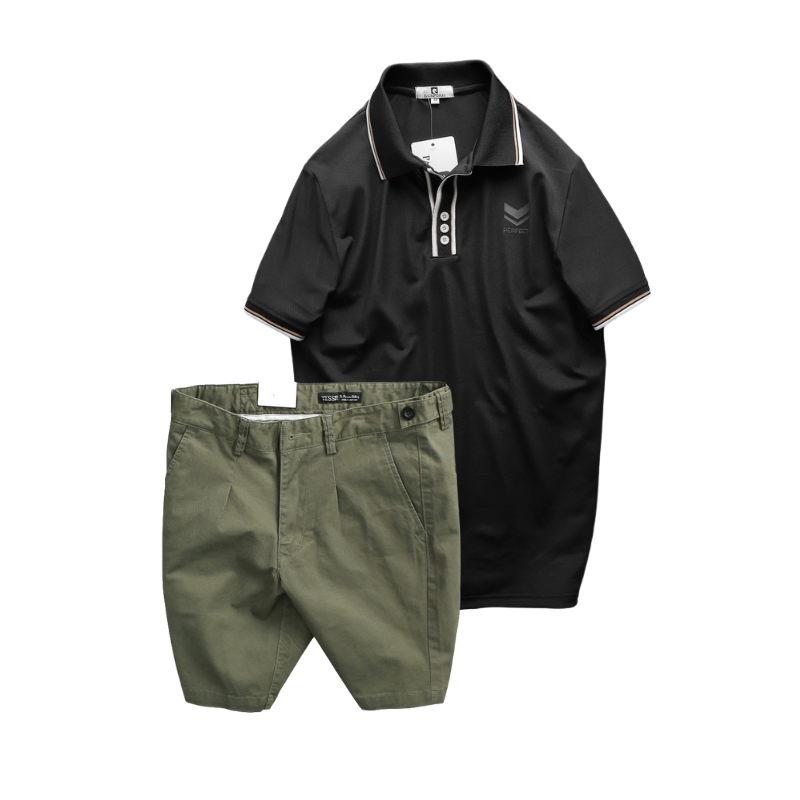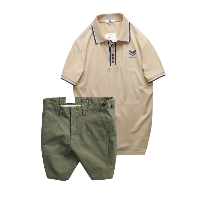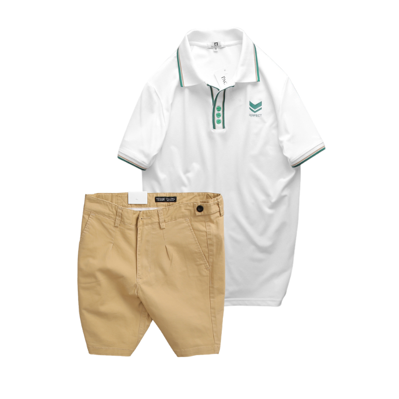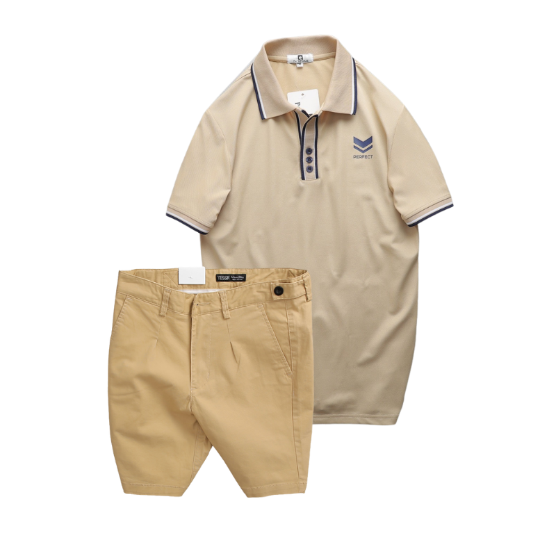 Cung cấp sỉ set bộ nam – áo thun nam pack horse polo cổ bẻ in logo chữ prefect và quần short kaki co giãn phối nút cao cấp (có size 36) chất lượng tốt giá tận gốc