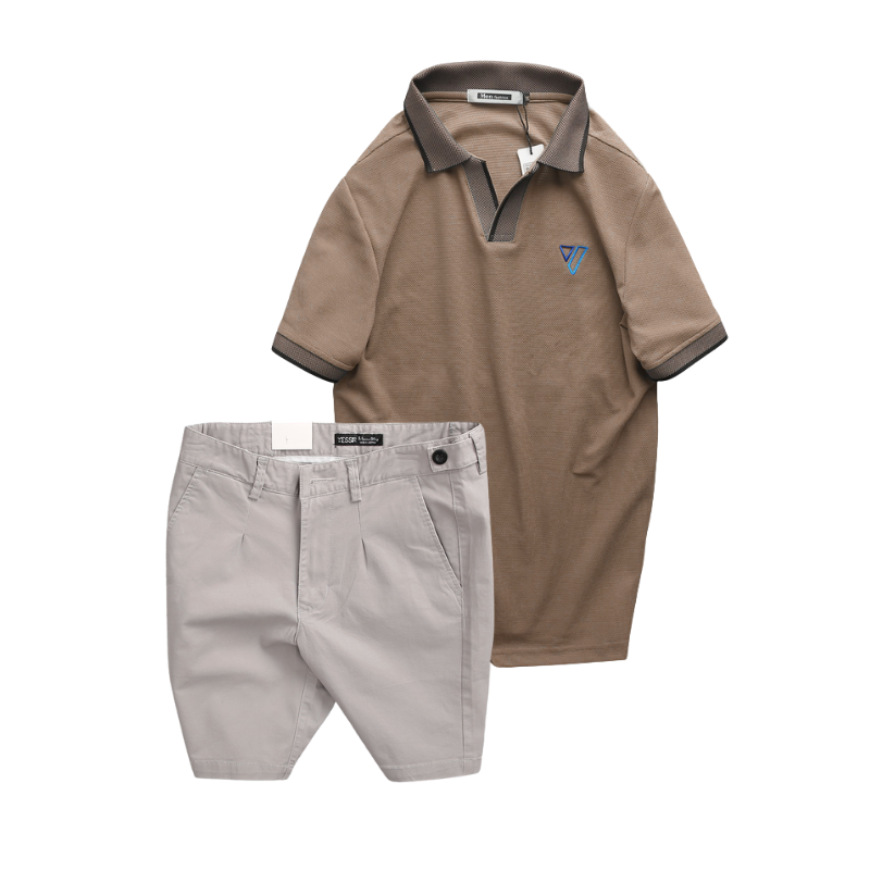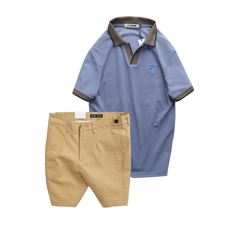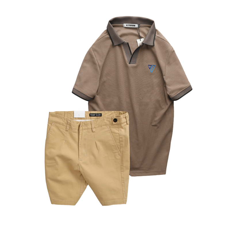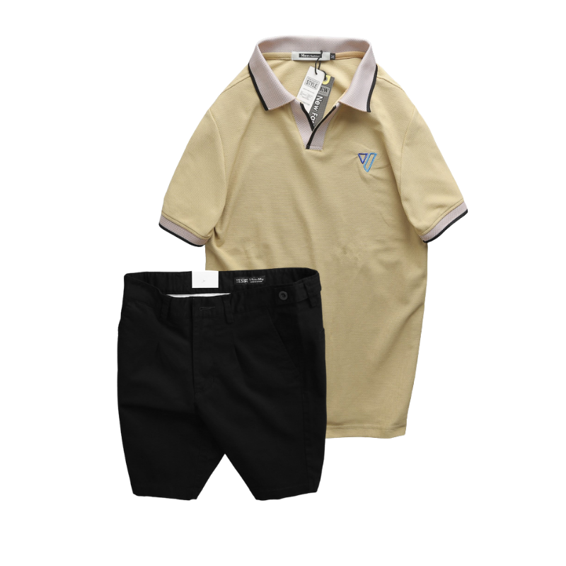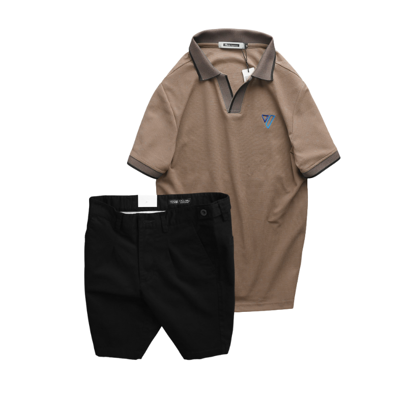 Bán sỉ set bộ nam – áo thun nam polo cổ bẻ thêu logo hình tam giác và quần short kaki co giãn phối nút cao cấp (có size 36) giá rẻ trên toàn quốc