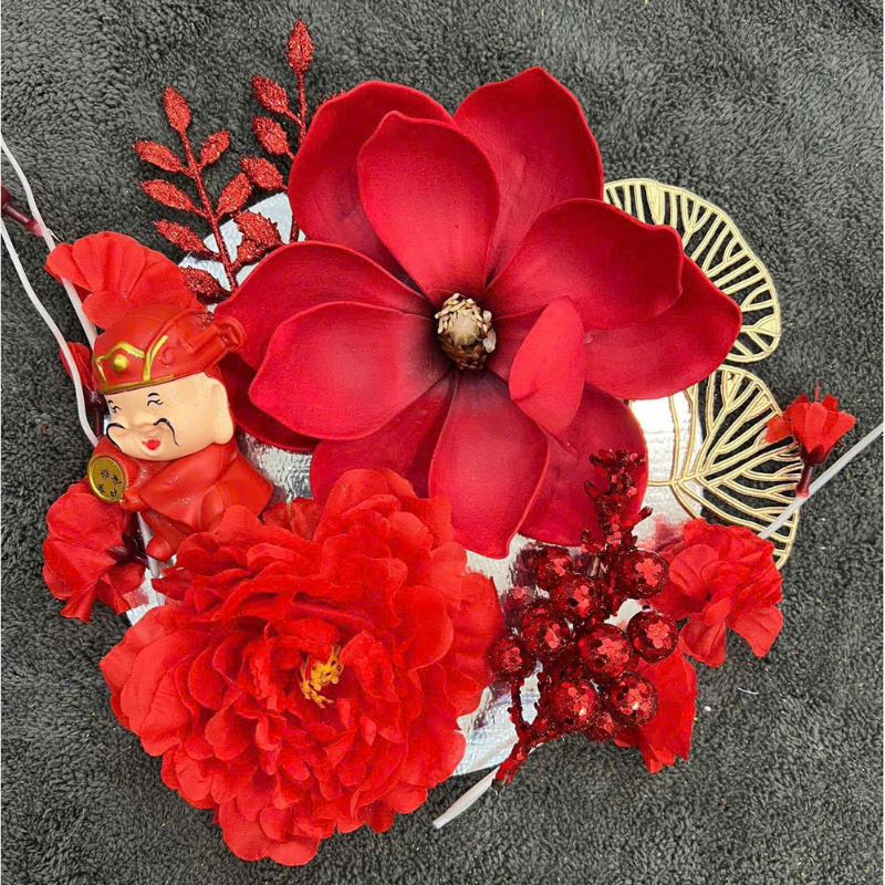 - Kiểu dáng dễ phối: treo cửa, treo tường, treo backdrop, gắn giỏ quà, trang trí bàn thờ ông địa – thần tài đều hợp