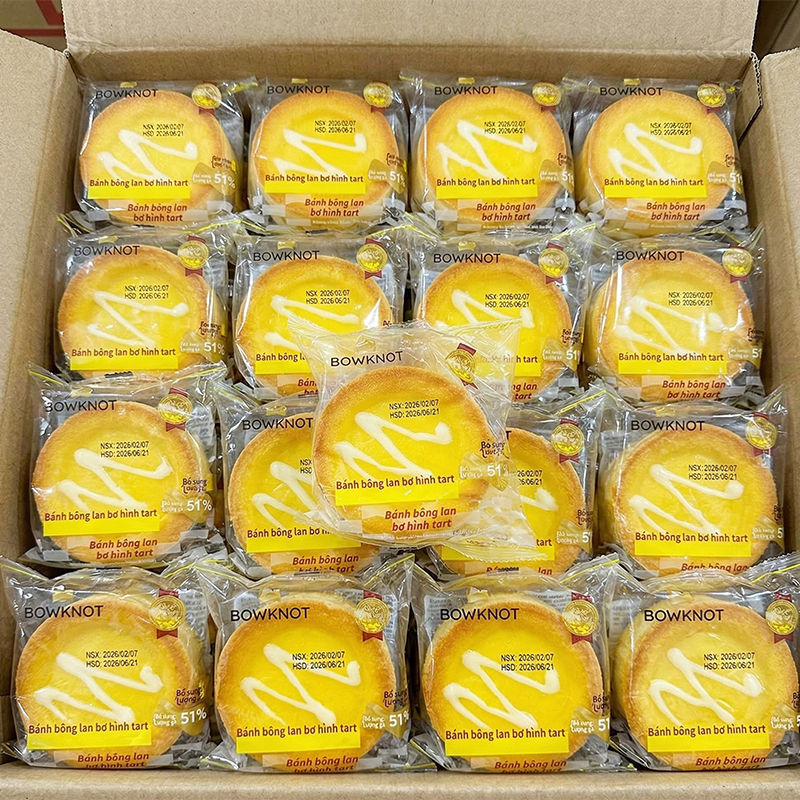Shop sỉ 1 Thùng Bánh Bông Lan BOWKNOT Phô Mai Hình Tart – Thùng 24 Cái