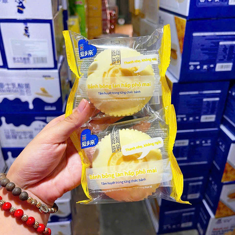 Bán sỉ shop sỉ 1 thùng bánh bông lan hấp phô mai axiqin giá rẻ trên toàn quốc