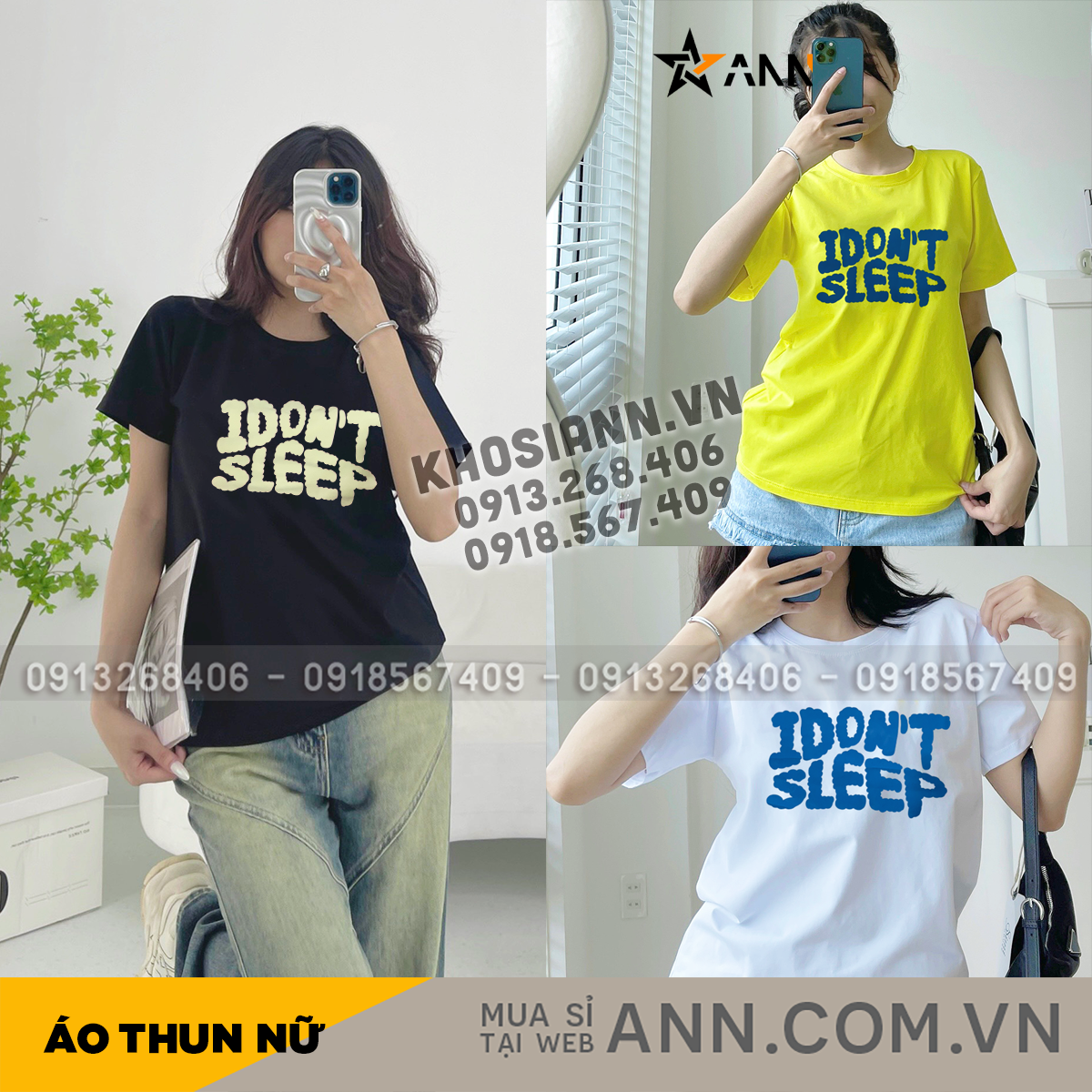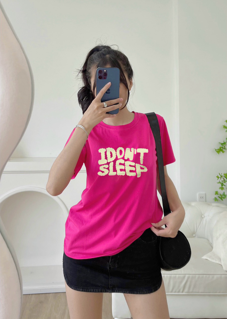 Bán sỉ shop sỉ áo thun nữ cổ tròn in chữ i dont sleep size m(40-60kg) giá rẻ trên toàn quốc